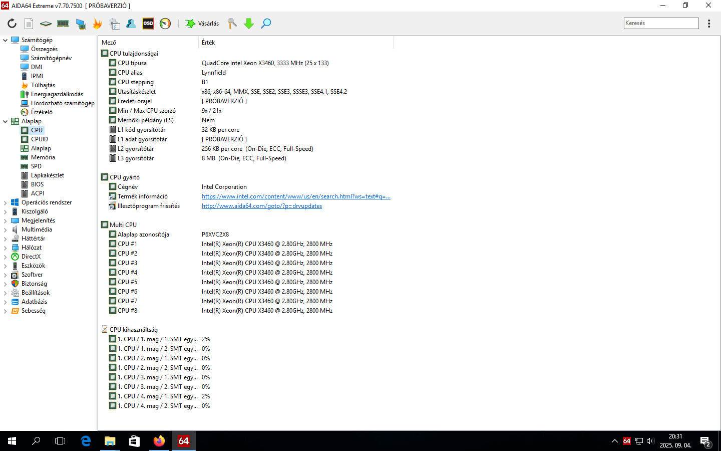 Intel Xeon X3460 2,8 GHz-es processzor 4mag/8szál,