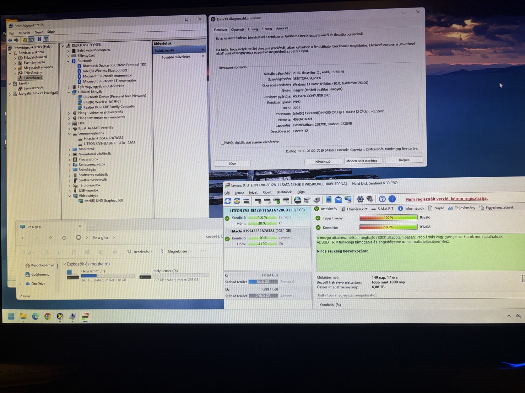 128GB M.2 SSD + 320GB SATA HDD, mindkettő hibátlan!