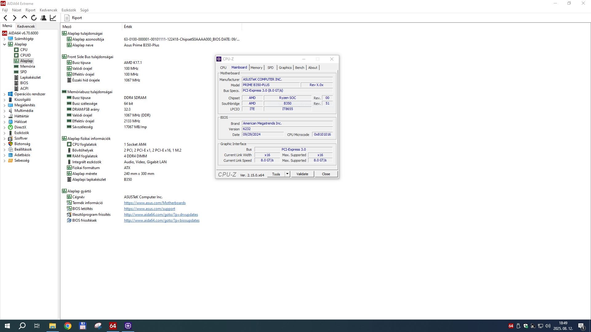 Eladó egy használt ASUS PRIME B350-PLUS alaplap.