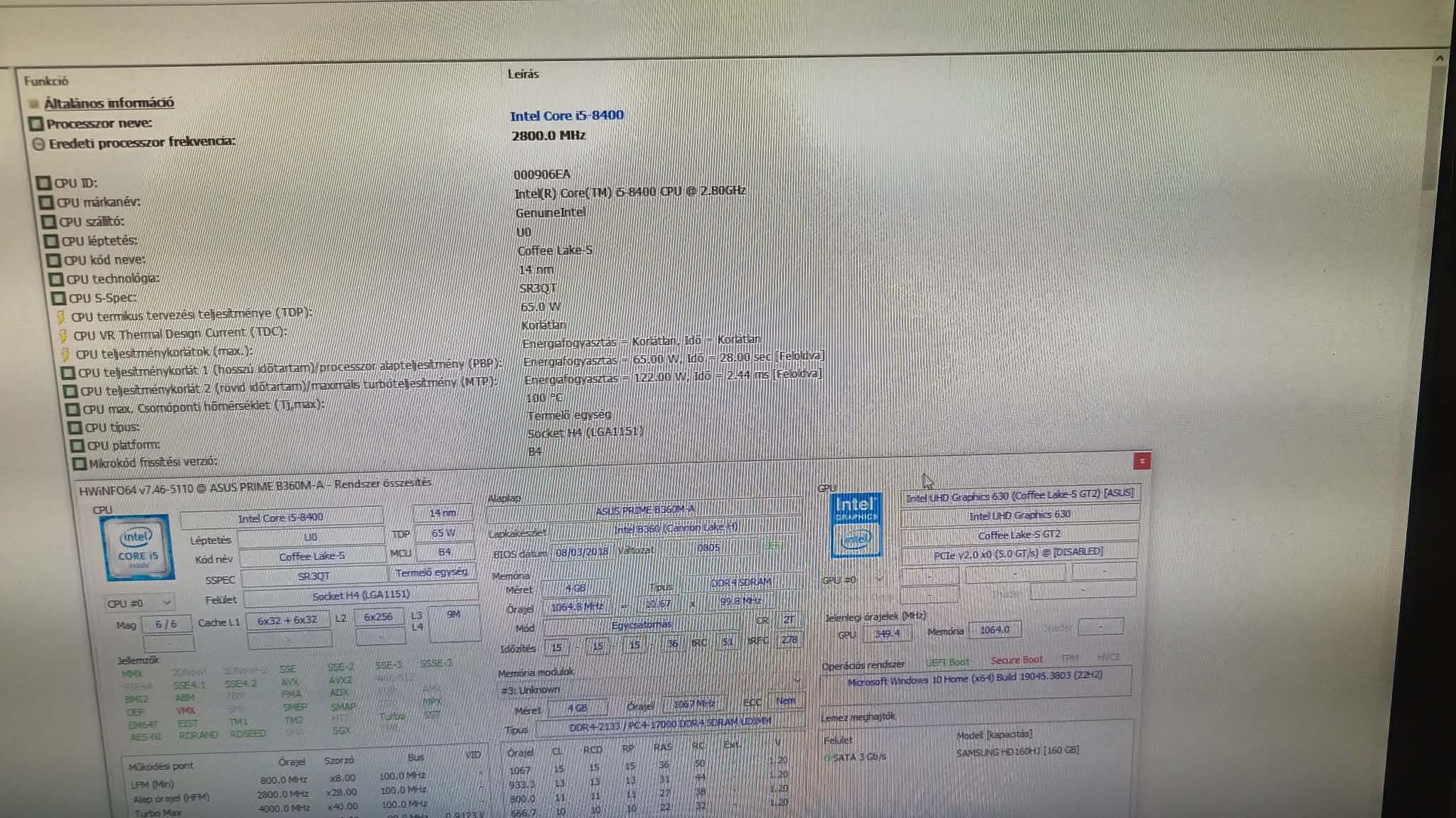 Processzor: I5-8400