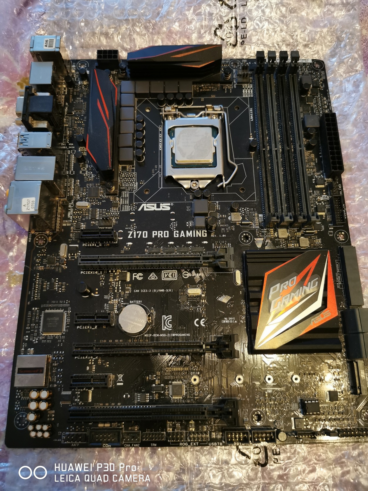 Asus Pro Gaming alaplap,Lga 1151 es ddr4 es memoria foglalatu,van benne egy intel i3 proci,az csak azért hogy a proci foglalatot ne érje semmi.