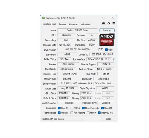 ASUS Radeon RX 580 OC 8GB GDDR5 256bit (ROG-STRIX-RX580-O8G-GAMING)