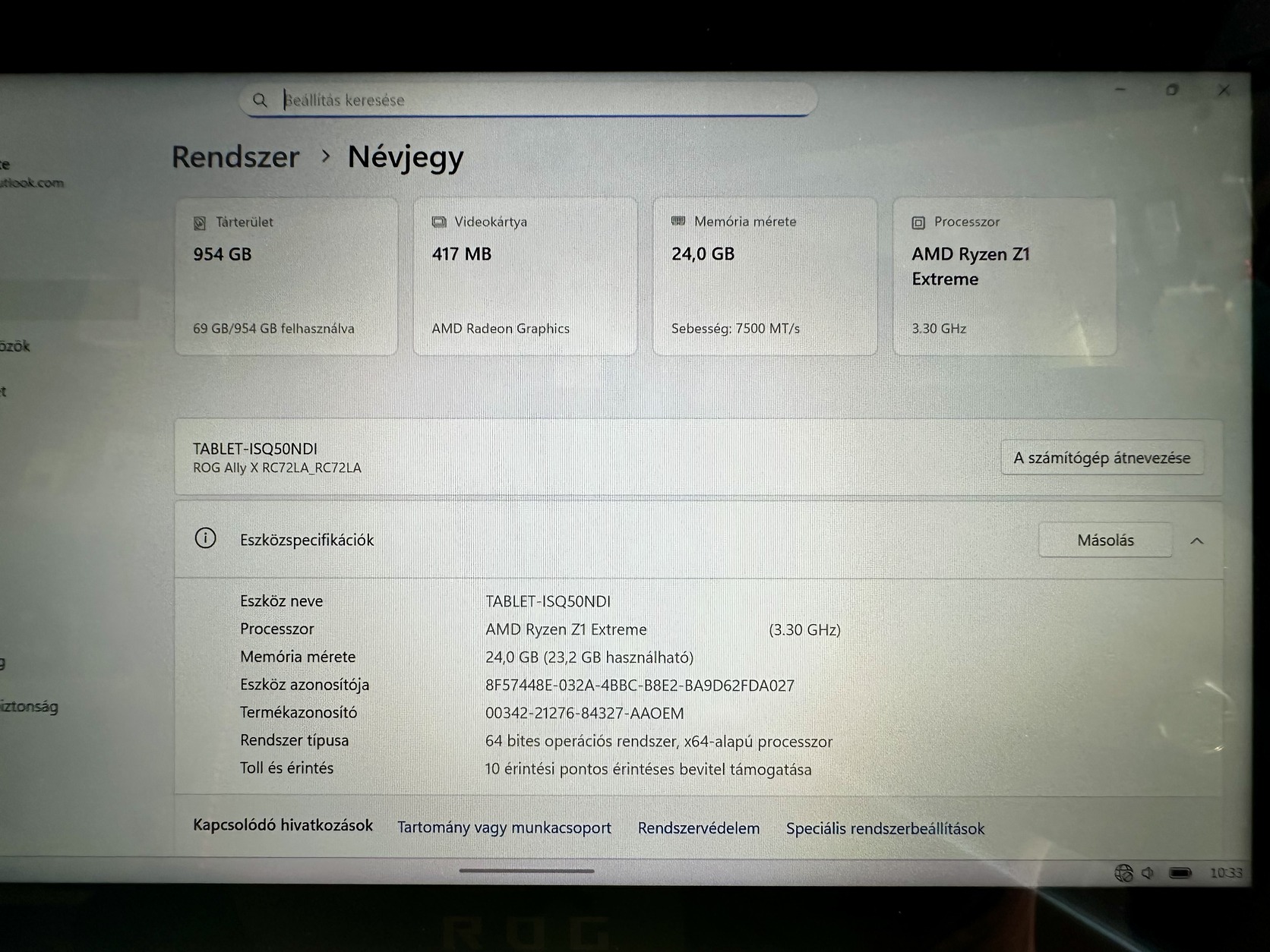 AMD Ryzen Z1 Extreme 24 GB RAM 1 TB SSD Windows rendszer Erős hardver, mai játékok is simán futnak
