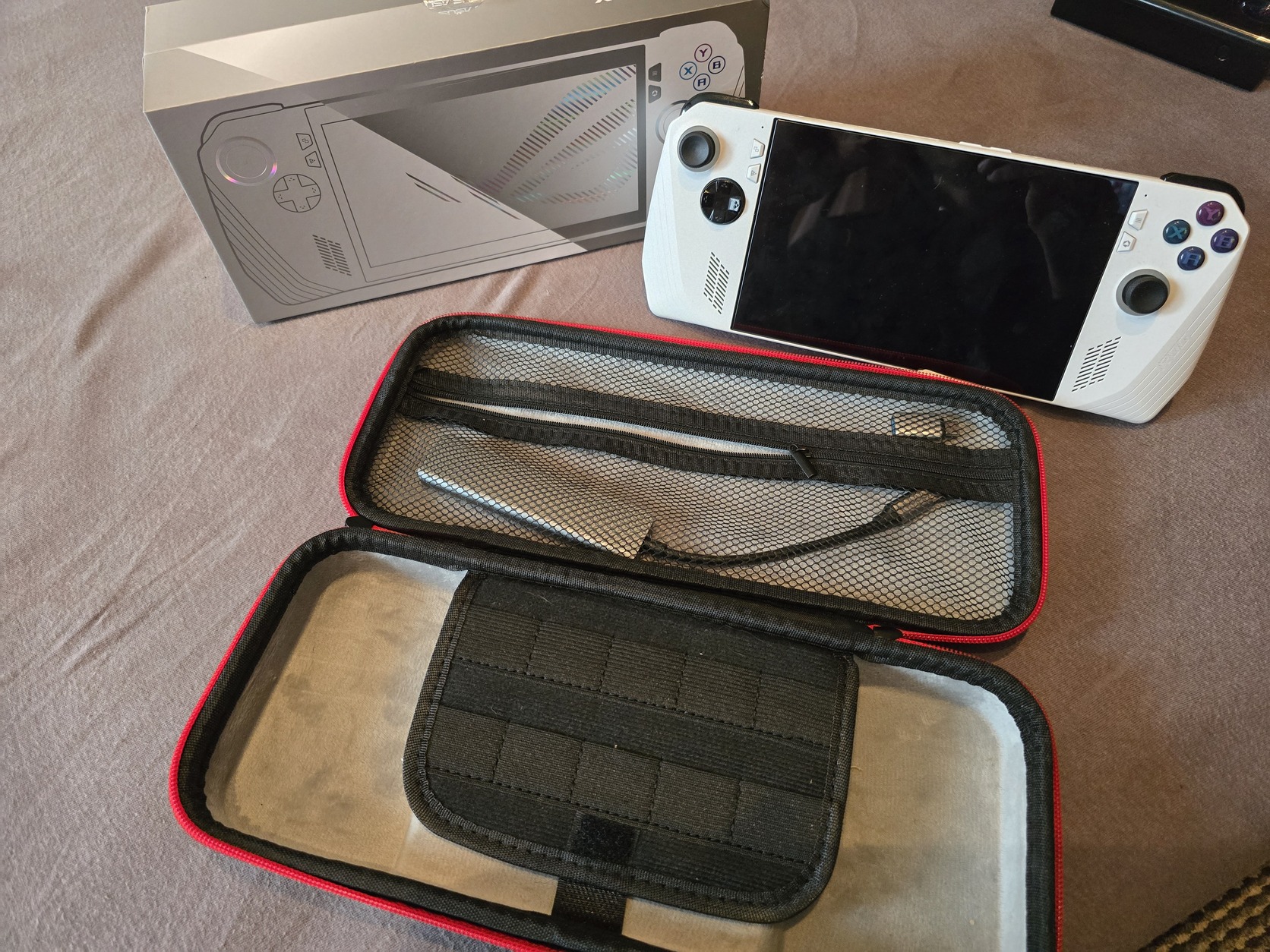 Laptop vétel végett kihasznalatlan eladó lett RoG Ally Foliás kepernyő,egyik képen fényképezve kis hibaja müködésben semmit nem befolyásol illetve cserélve lett az egyik joy hall sensorosra de nem talalom megvan a gyári illetve masik oldali hall joy is ha előkerül azt is adom hozzá.