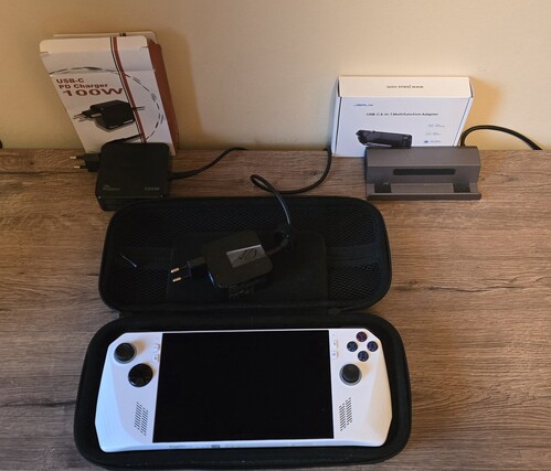 Eladó egy Asus Rog Ally töltővel, Jsaux dokkolóval, és egy 100W PD töltővel. A kijelzőn van egy apró karc, ami csak kikapcsolt állapotban látszik, ha úgy esik rá fény. Az ára ezért ennyi.
