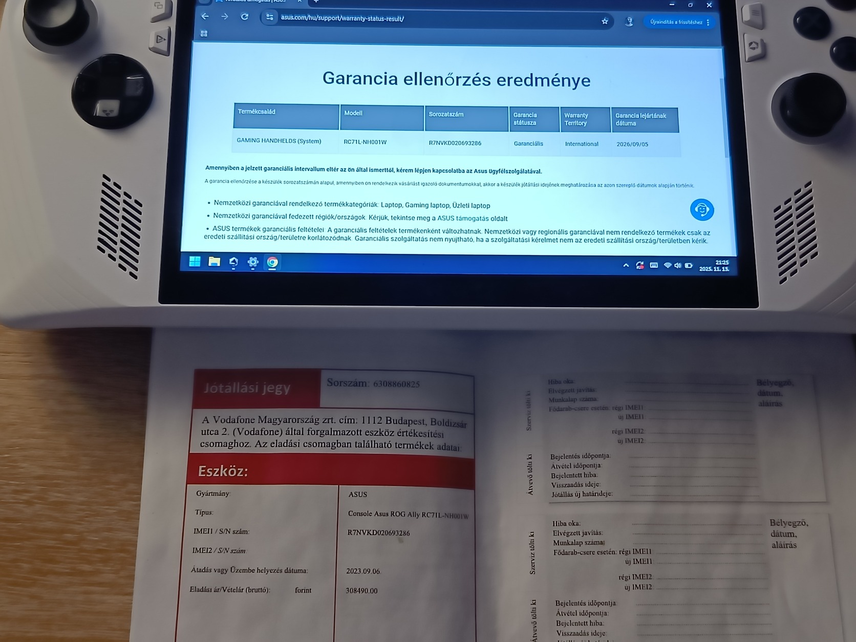 Vodafone-garancia 2026.09.05-ig érvényes.