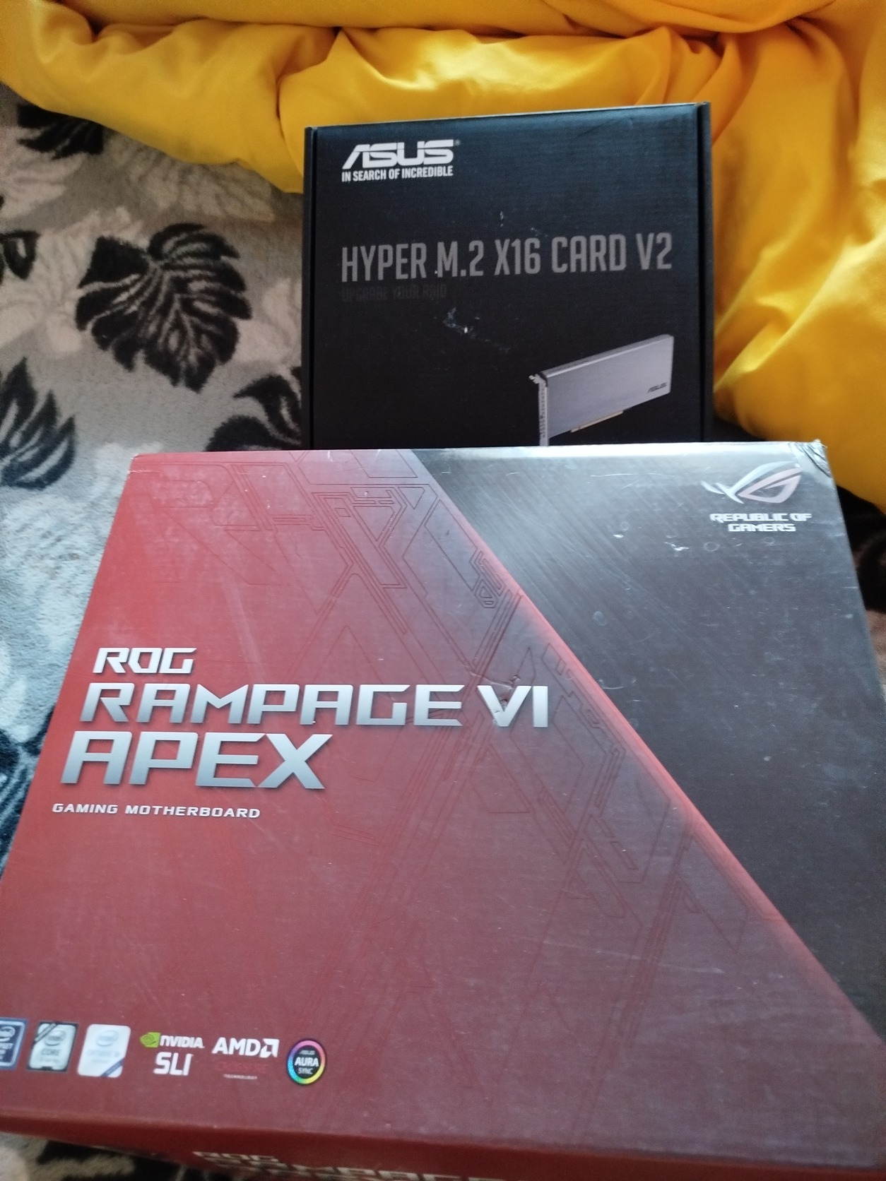 A Legenda - csúcs még a mai napig is szerintem ez a lap. Sajnos nem tehetem meg hogy megtartom; ehhez a hátlapi takarólemez megvan és egy Kingstone Hyper-X 4x M.2-es ssd card amit a PCI-E slotba tehető, csak át kell állítani Advanced-menü-cpu-configuration - adatként működjön a foglalat nem pedig a VGA van ebben; évek óta hibátlanul teszi a dolgát, egy i9-7900X társaságával is nagyon bitang tud lenni.