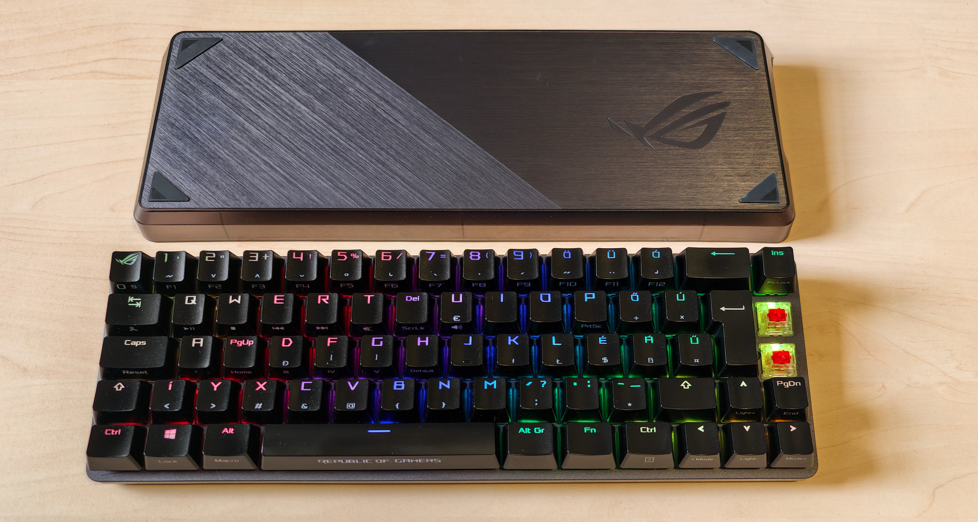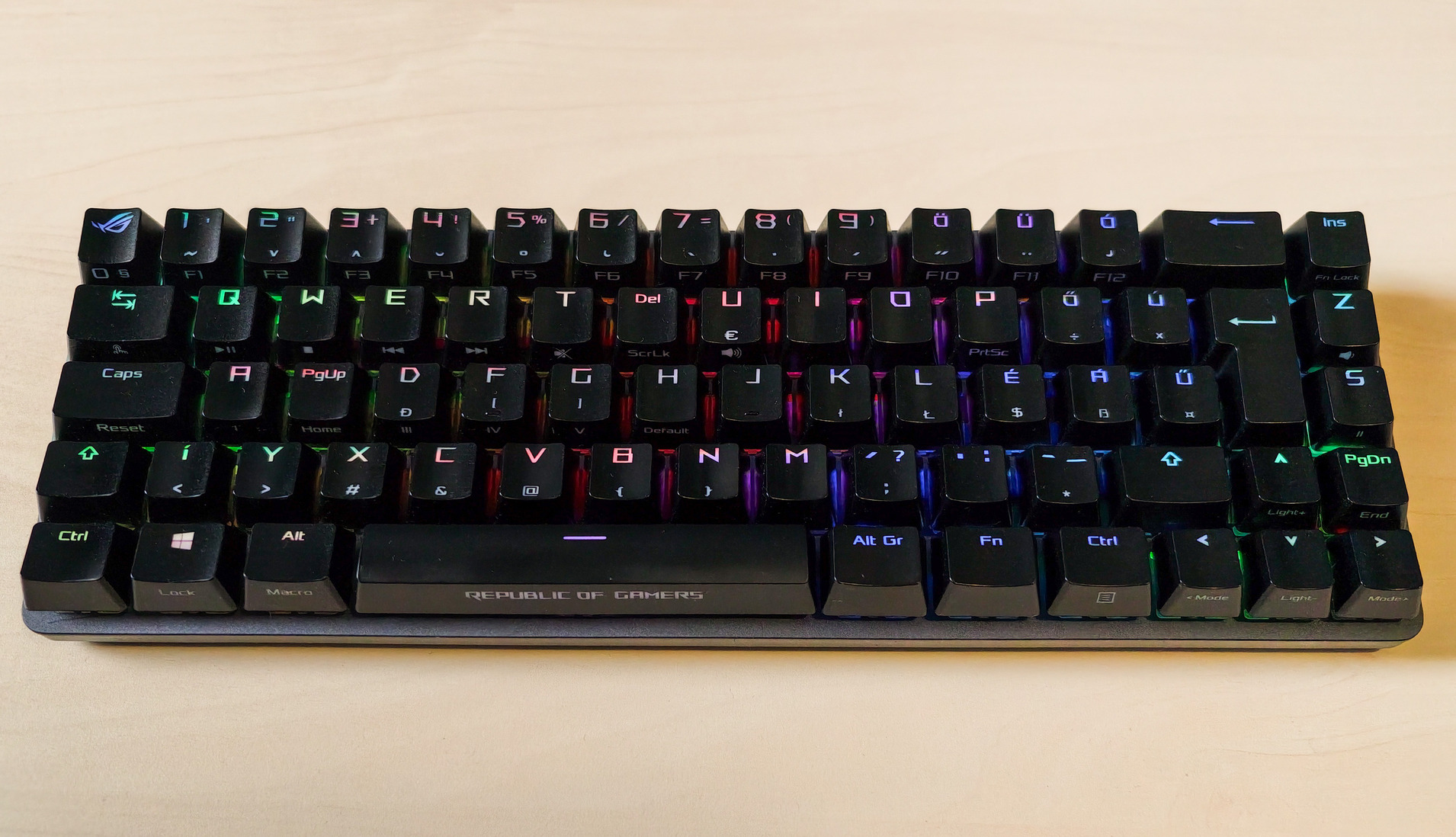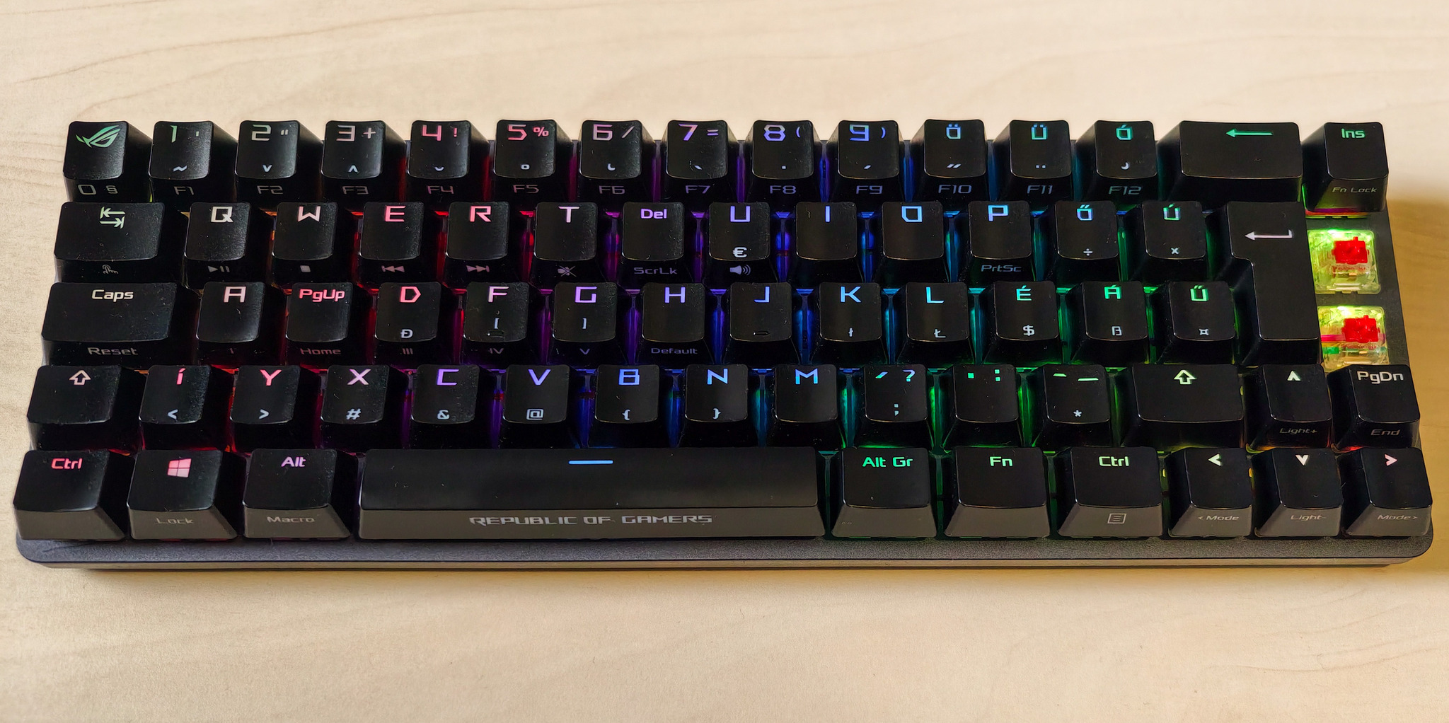 Mechanikus billentyűzetek között viszonylag ritka az ISO-HUN kiosztás, főleg fényáteresztű ABS keycap-ekkel.
