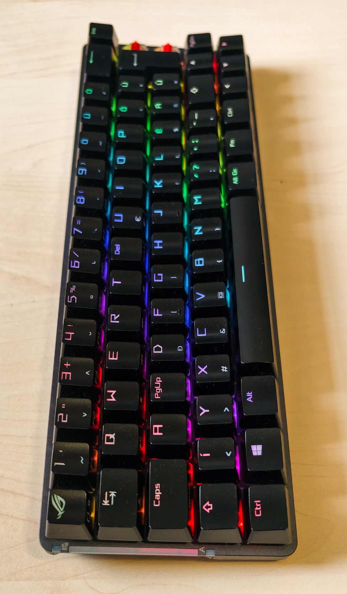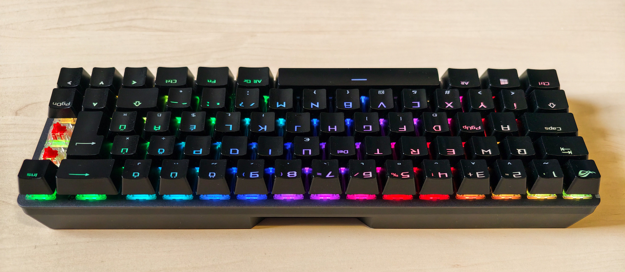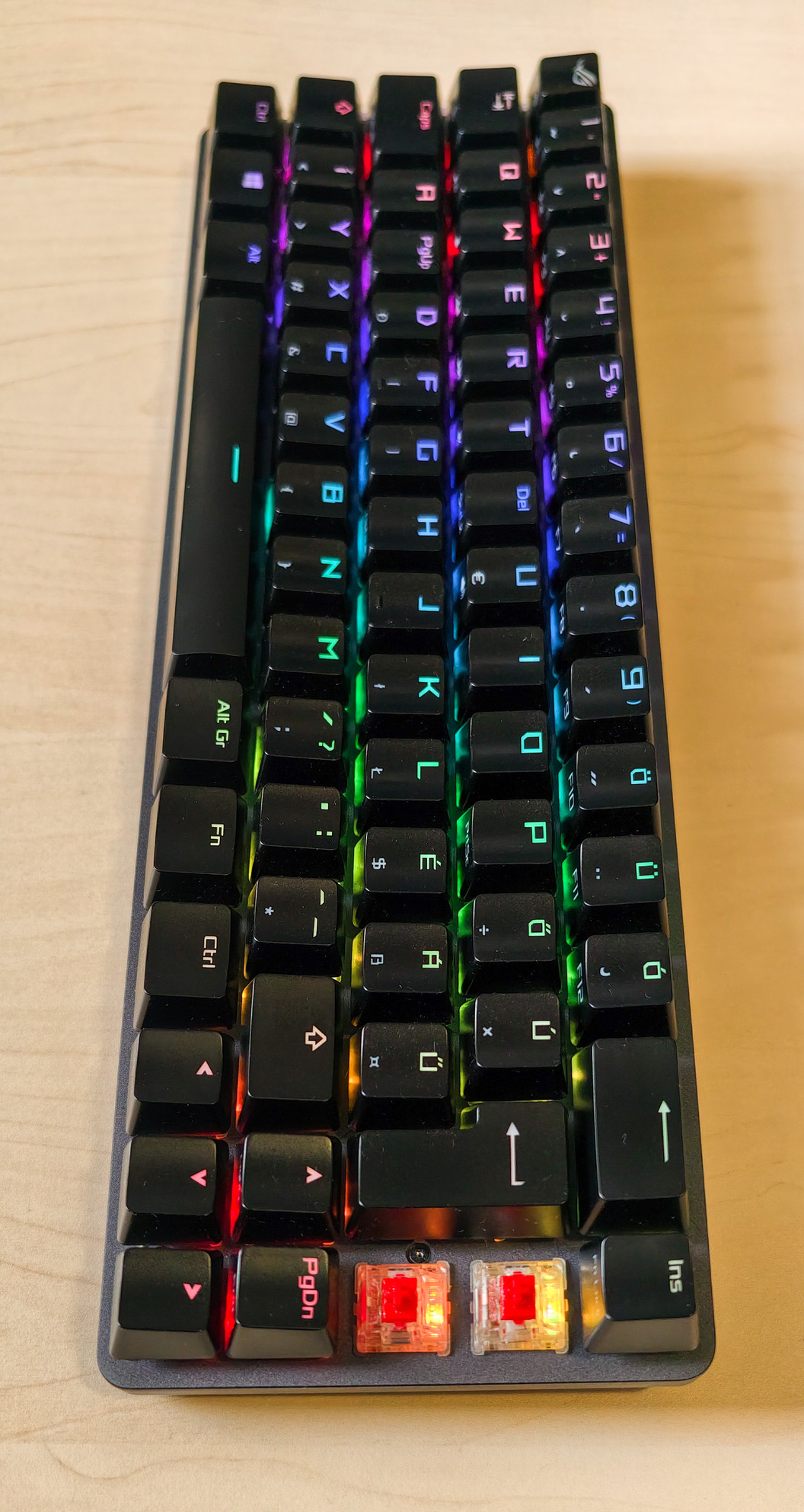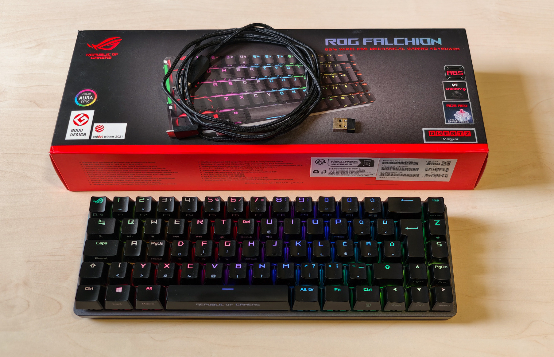 Mechanikus billentyűzetek között viszonylag ritka az ISO-HUN kiosztás, főleg fényáteresztű ABS keycap-ekkel.
