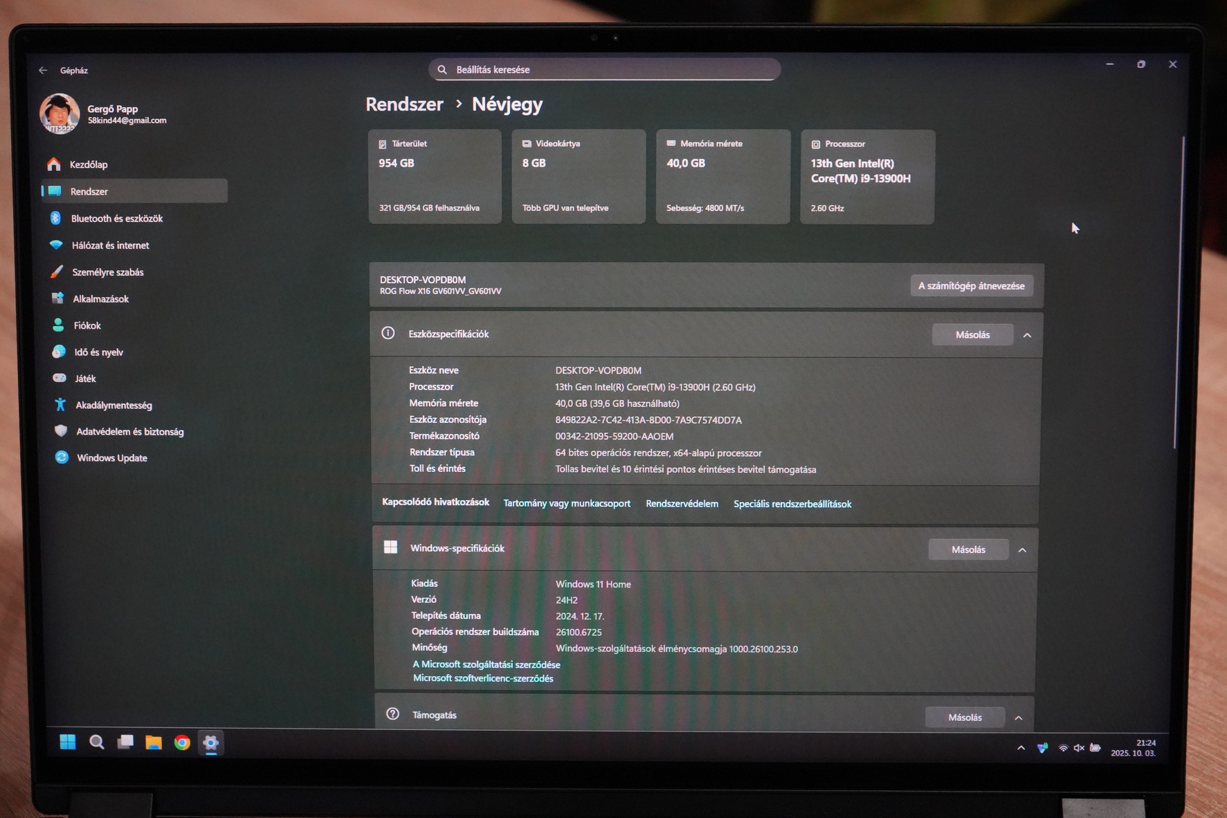 -Memória: 40 GB DDR5-4800, bővíthető akár 64 GB-ig.