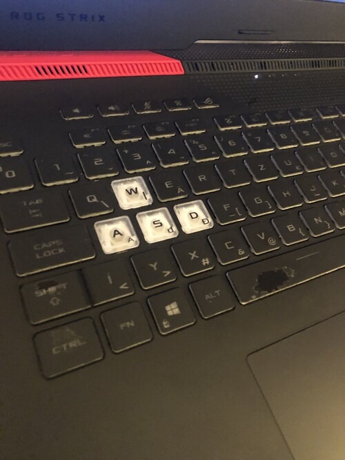 A billentyűzeten 3gombon kopás látható.