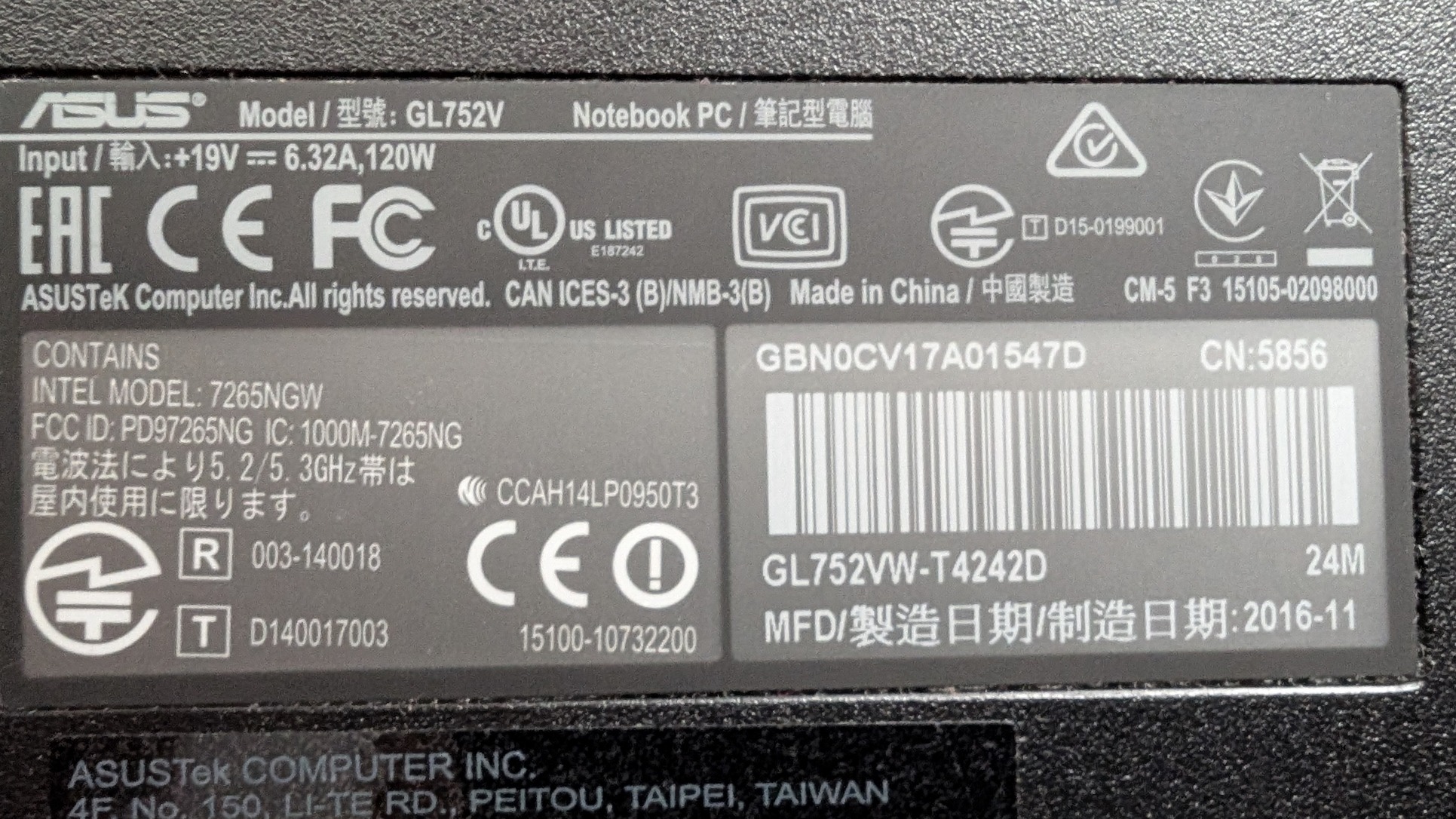 Asus Rog gl752v
