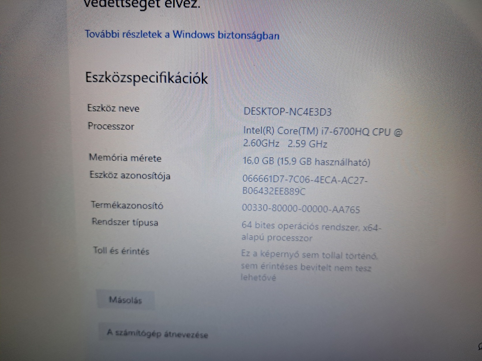 6th generation, quad-core Intel Core i7-6700HQ CPU @ 2.6GHz
