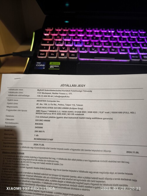 Eladó egy zsír új laptop bontatlan állapotban 3 év garanciával együtt. Plusz egy 5 tb os külső SSD Le írás : https://www.mysoft.hu/details.aspx?pn=G513RC-HN088&utm_source=arukereso.hu&utm_campaign=arukereso.hu_notebook&utm_medium=cpc&utm_term=G513RC-HN088&aku=f5af48929463b966a847de1a104ab8c3#spec