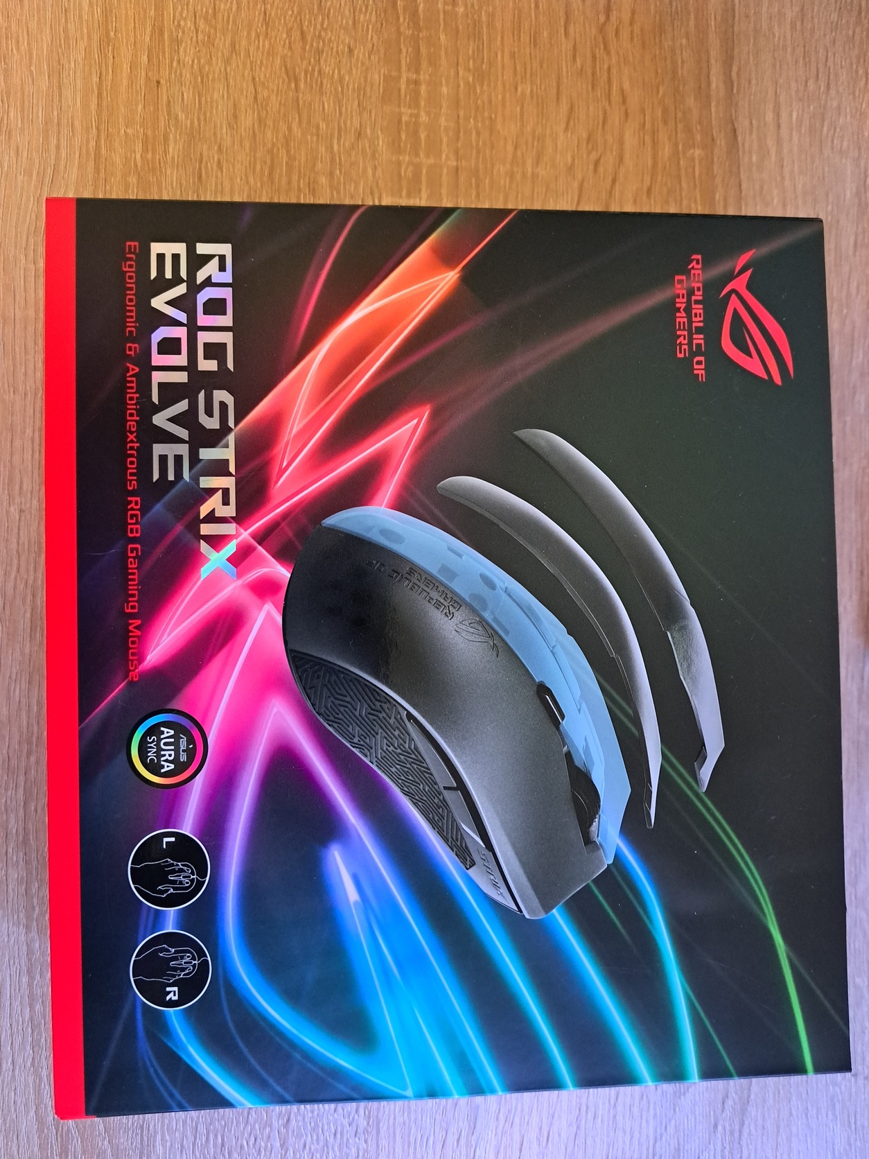 Eladó egy Asus Rog Strix Evolve gamer egér. RGB-s, Omron kapcsolók, 7200 DPI, 8 gomb, Aura Sync kompatibilis.
