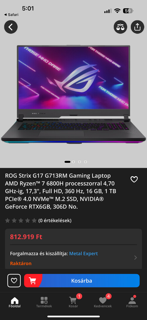 Gyártó: Asus • Processzor típus: AMD Ryzen 7 • Processzor számozás: 6800H • Memória méret: 16 GB • SSD méret: 1TB • Videokártya típus: GeForce RTX 3060 140w • Kijelző méret: 17,3 • Kijelző felbontás: 1920 x 1080 • 360hz