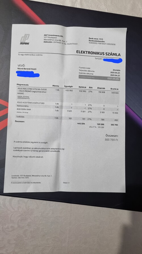 2021 április végi vásárlás (lsd.: számla), onnantól él a 36 hónap háztól-házig garancia. Ha baja van kijönnek, elviszik, megjavítják, ha kész visszahozzák.