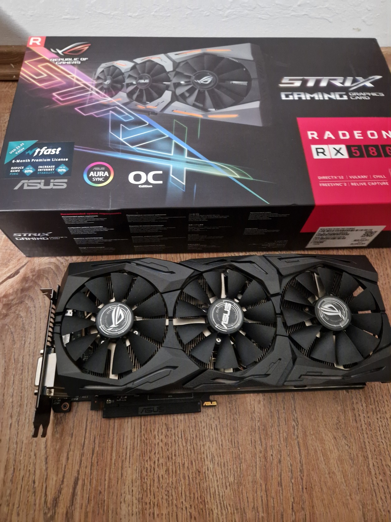 Eladó a képen láható Asus Rog Strix RX580 8Gb videókártya. Dobozával.