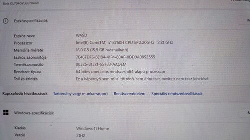 - Intel Core i7-8750H(8.generációs) 2.20GHz processzorral,