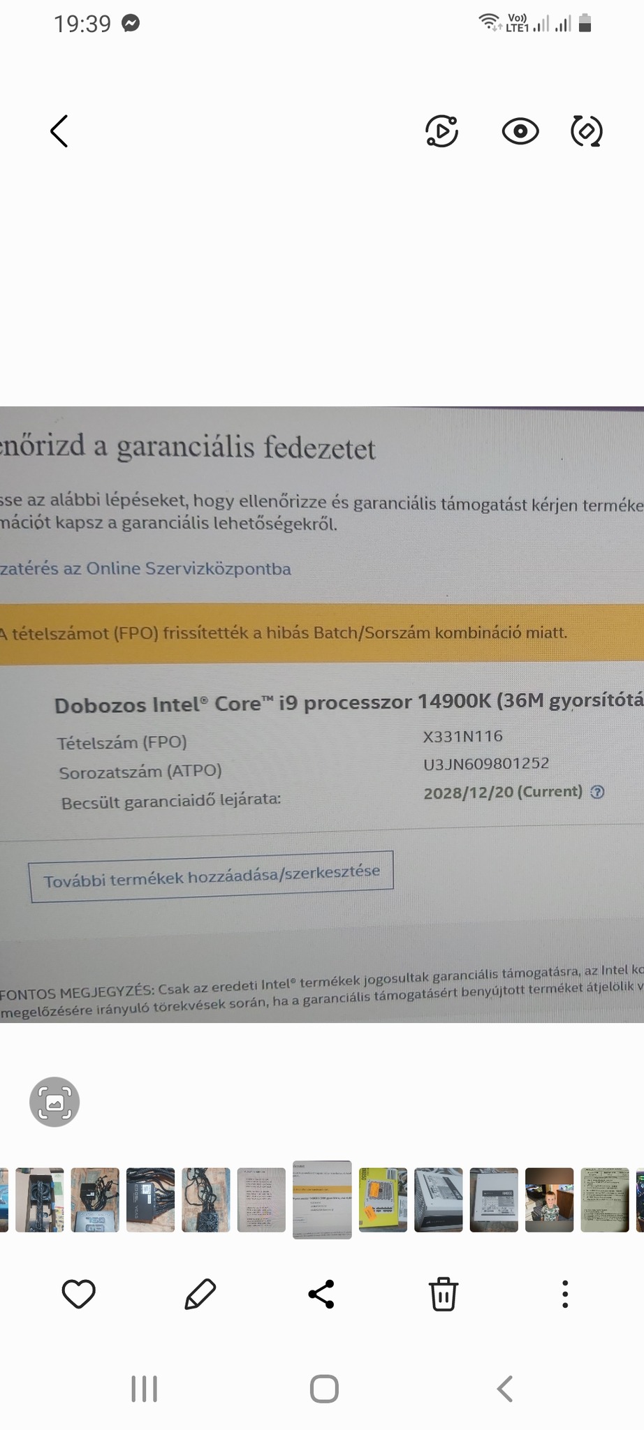 I9 14900k dobozos gyártói gari 2028. 12.