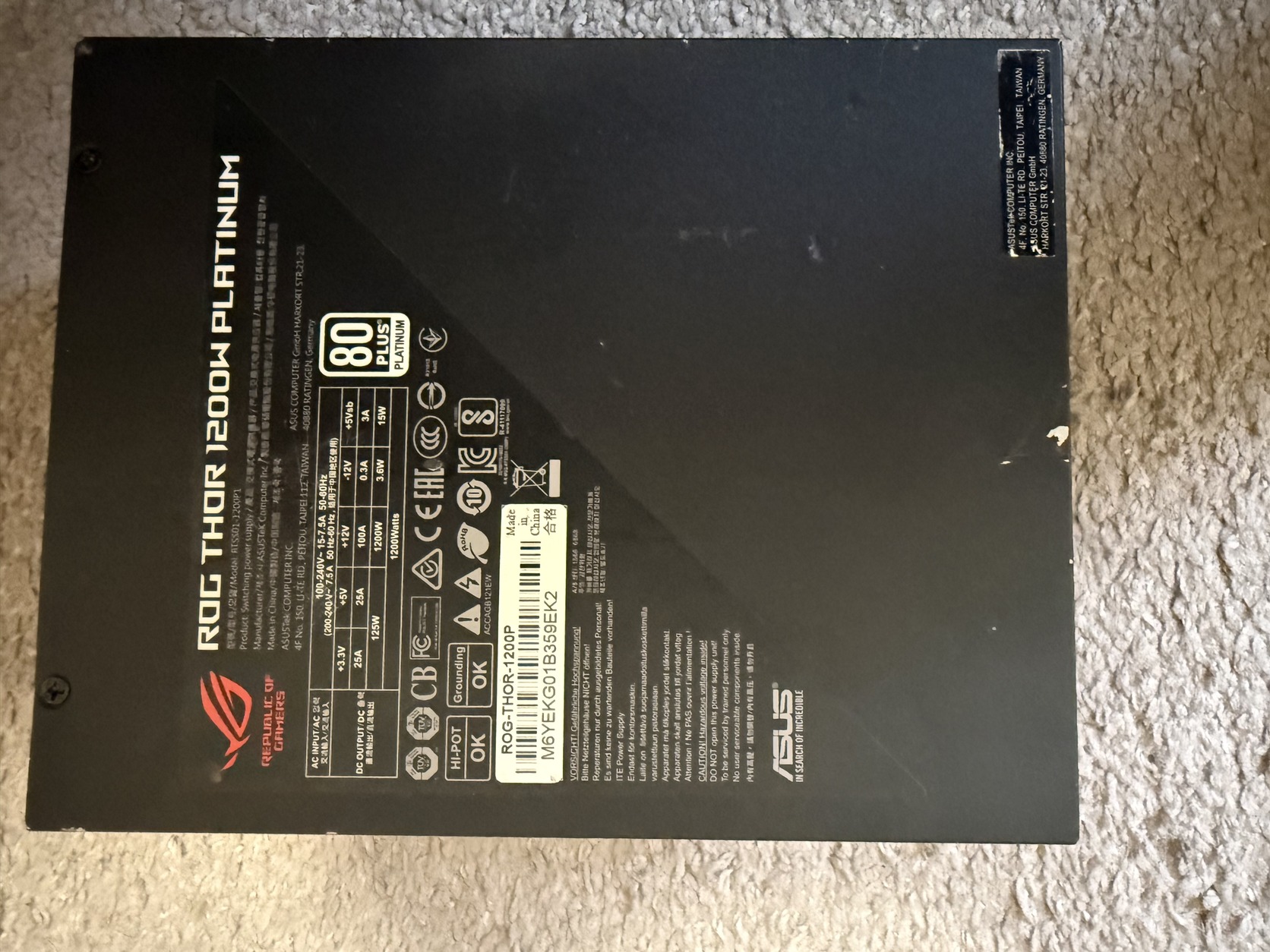 Asus Rog Thor 1200w Platinum rev1