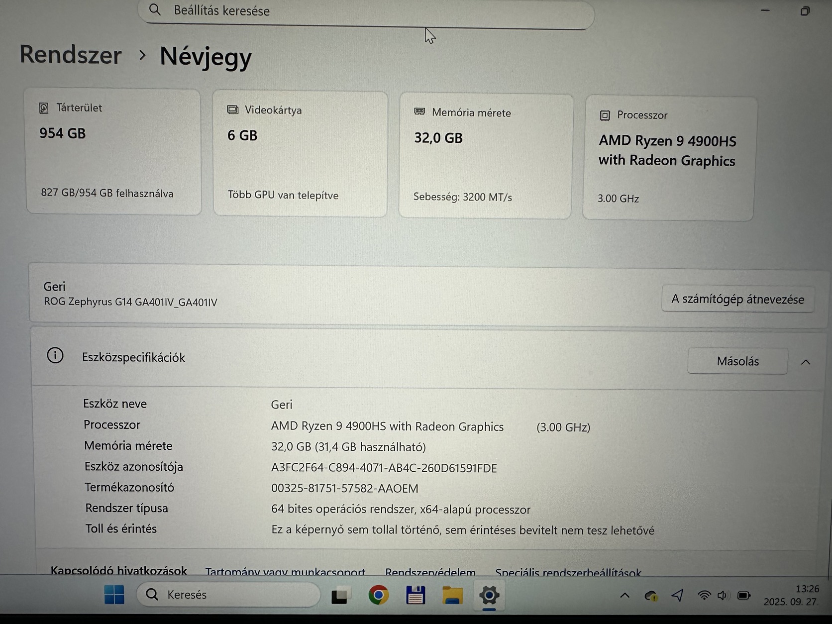 Frissen telepített Windows 11 rendszerrel adom, illetve jár hozzá a gyári töltője, a gyári doboza illetve egy ROG táska is.
