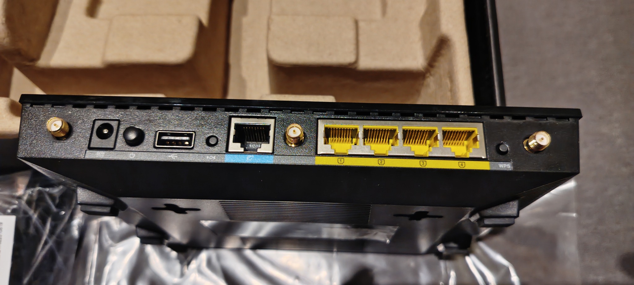 3db antennája, 1db gigabites WAN portja, és 4db gigabites LAN portja, hátul 1db USB 2.0, elől 1db USB 3.0 portja van. Lehet rakni rá Tomato vagy OpenWRT-t firmware-t is, de a gyári szoftver nálam elég volt.