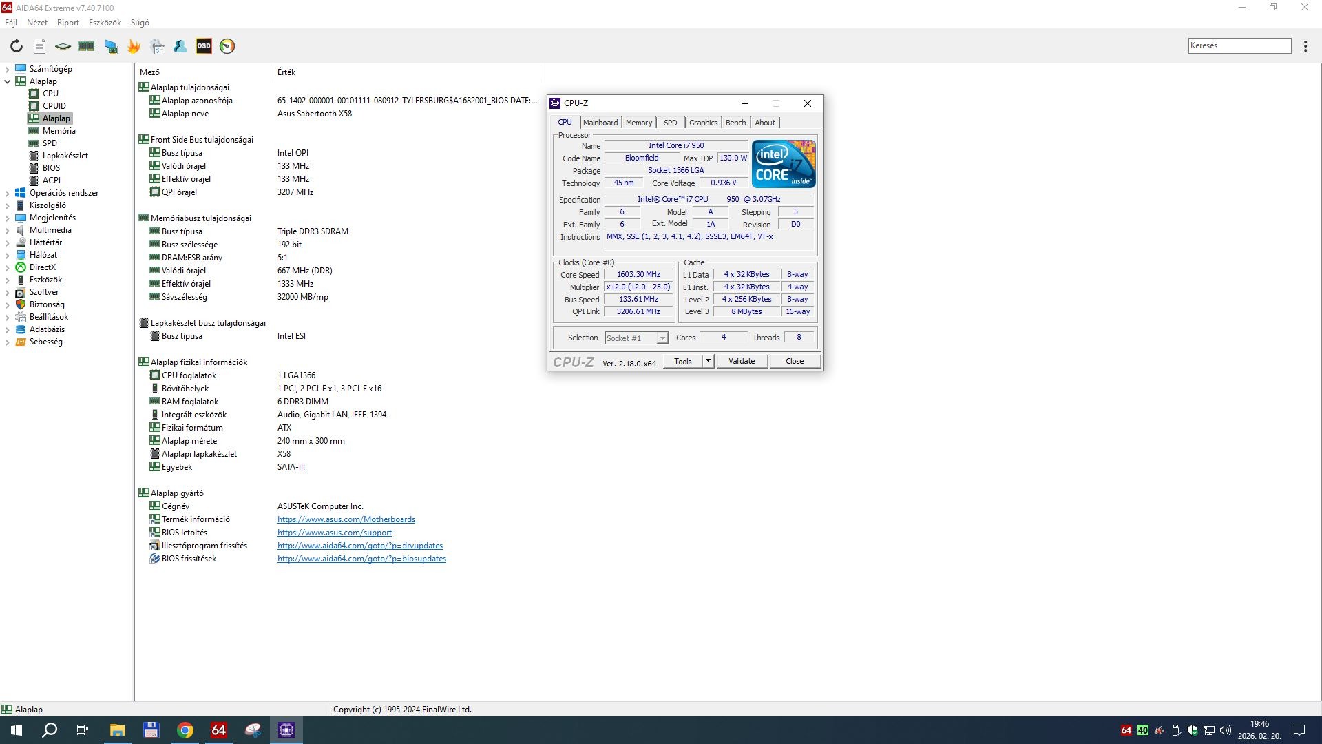 egy i7 950 Processzor és 6x2GB DDR3 1333Mhz-es memória.