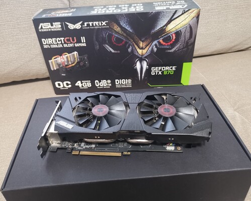 Eladó a képeken is látható Asus Strix Geforce Gtx 970 OC Directcu II 4GB Gddr5 256bit videókártya eredeti dobozában.