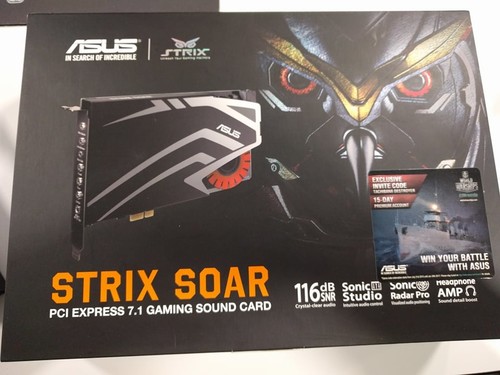 Eladó Asus Strix Soar hangkártya. Verseneyen nyert, egyszer sem volt használva, ahogy a képen is látszik. Helyileg Soltvadkert/Kiskunhalas/Szeged/Budapest.