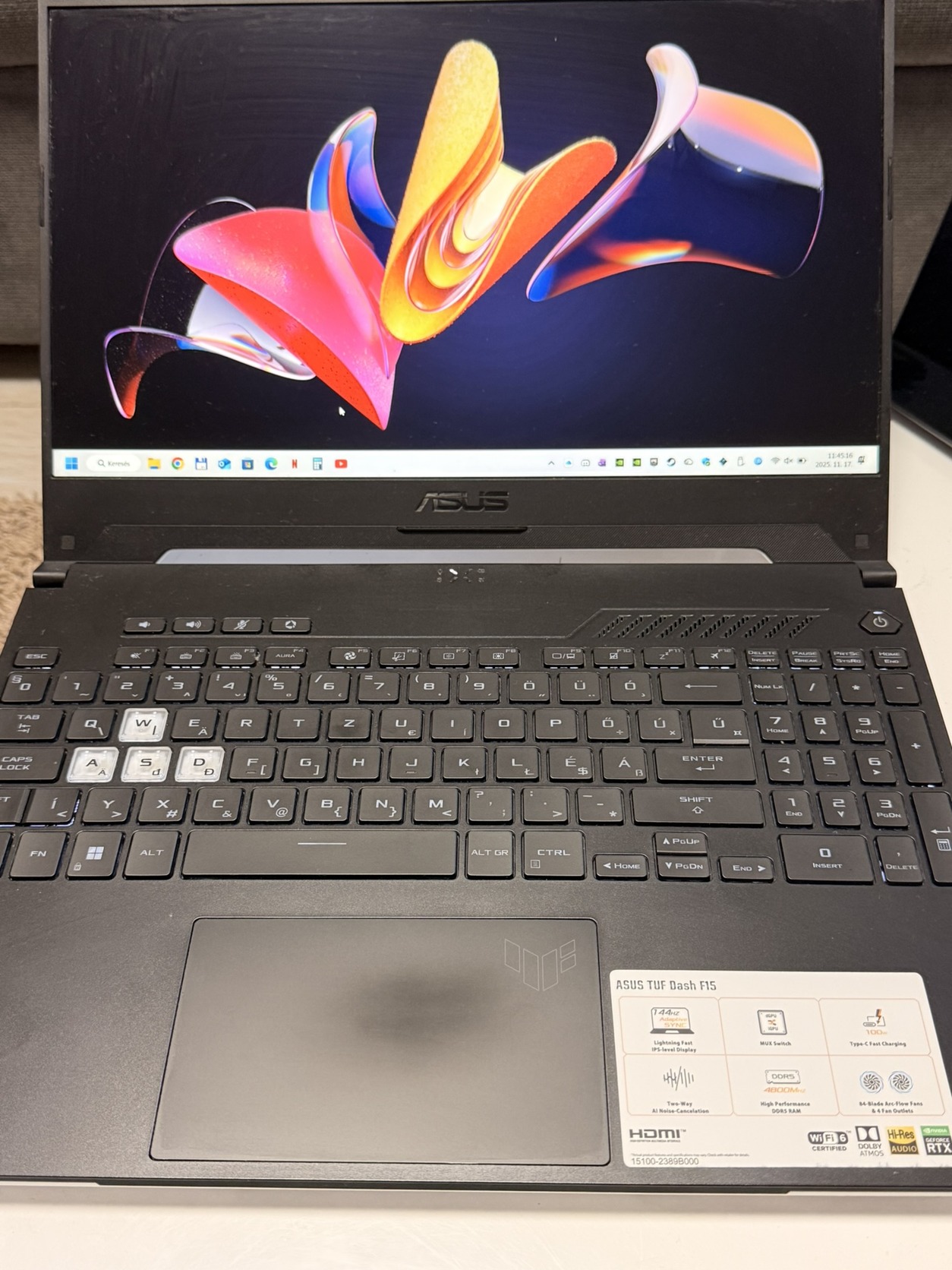 Eladó ASUS TUF Dash F15 FX517ZE gamer/munka laptop hibátlan műszaki állapotban. Gondosan használt, rendszeresen karbantartott. Minden port megfelelően működik