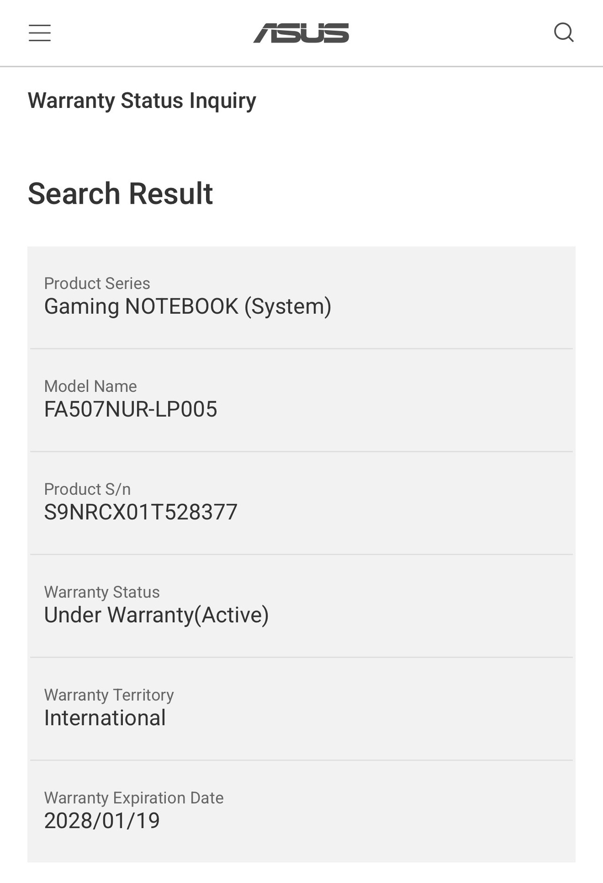 Sorozatszám alapján 2028. 01.-ig nemzetközi garanciás ami a képen is látható!