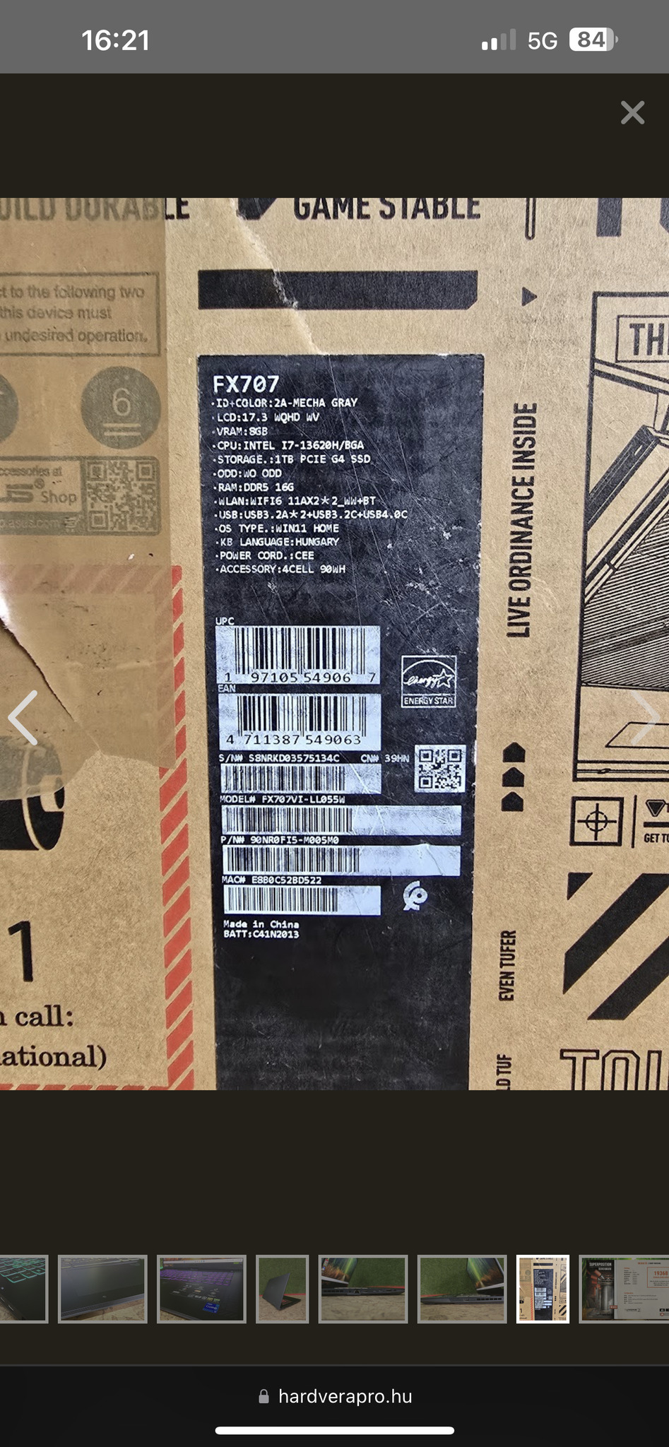 Eladó/ csere Asus TUF F17 gaming laptop
