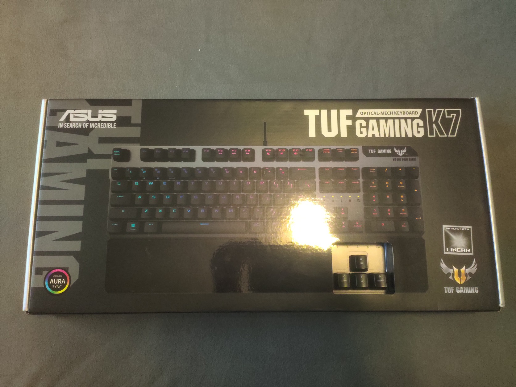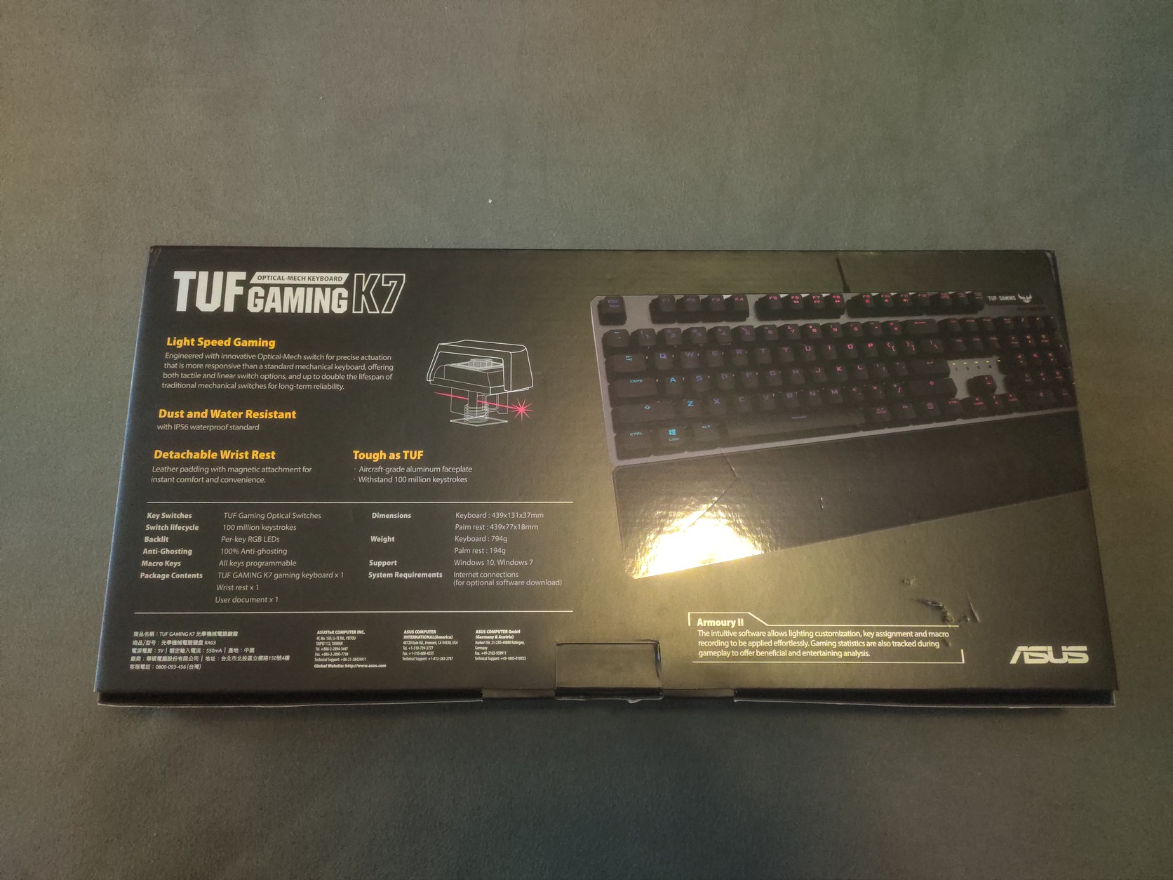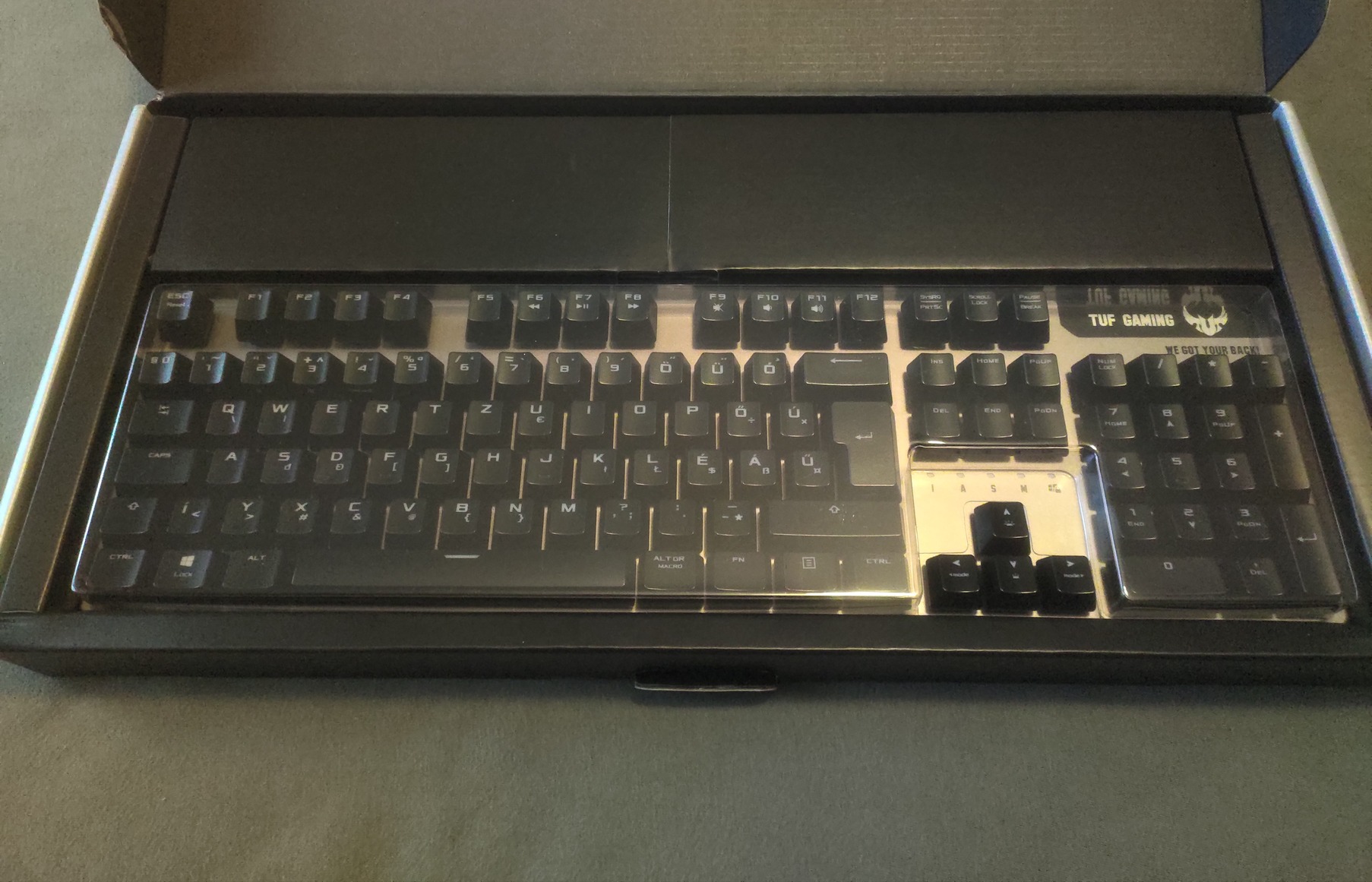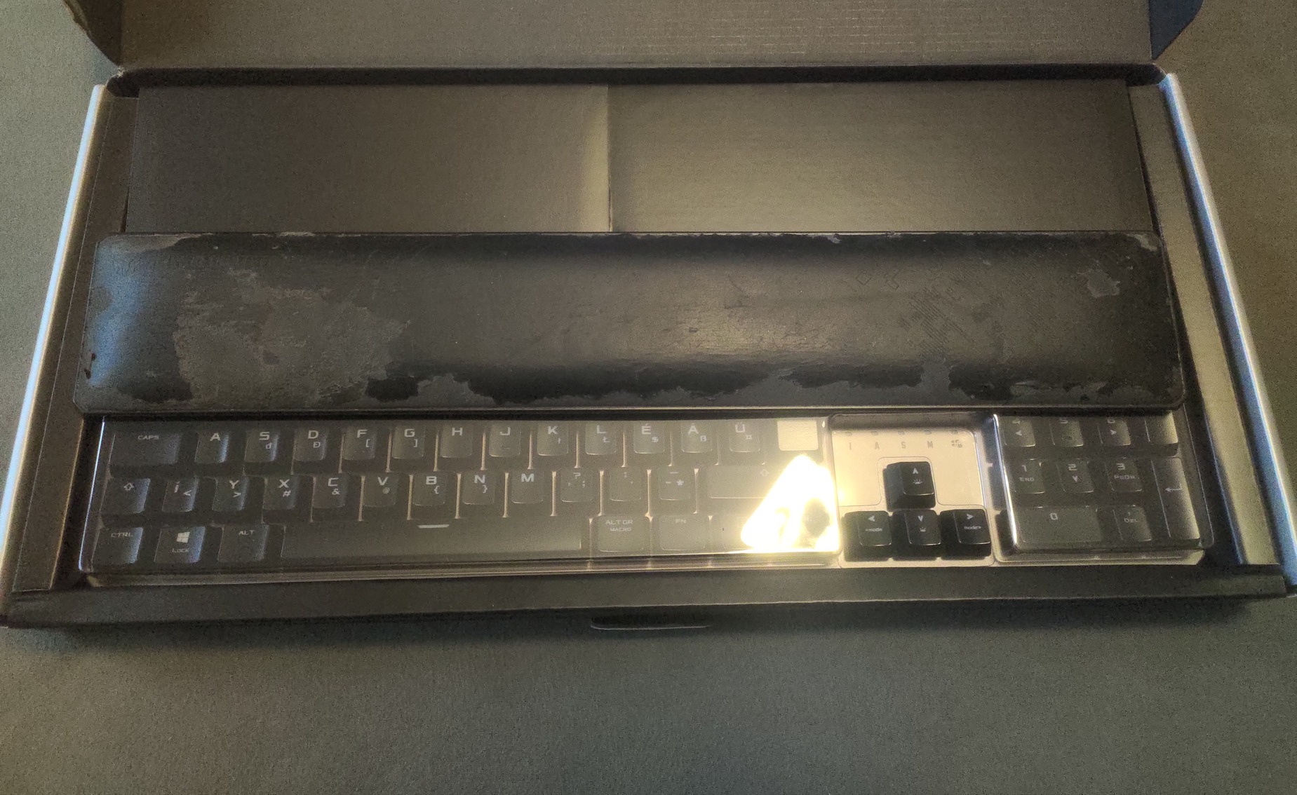 Kategóriaváltás miatt eladóvá vált Asus TUF Gaming K7 billentyűzet. Az eszköz eredeti dobozában és csomagolásában kerül átadásra. A könyöktámasz az évek során használódott – ahogy a képeken is látszik, néhány helyen kopott a borítása –, de ez csak esztétikai hiba, a billentyűzet működését és használhatóságát nem befolyásolja.