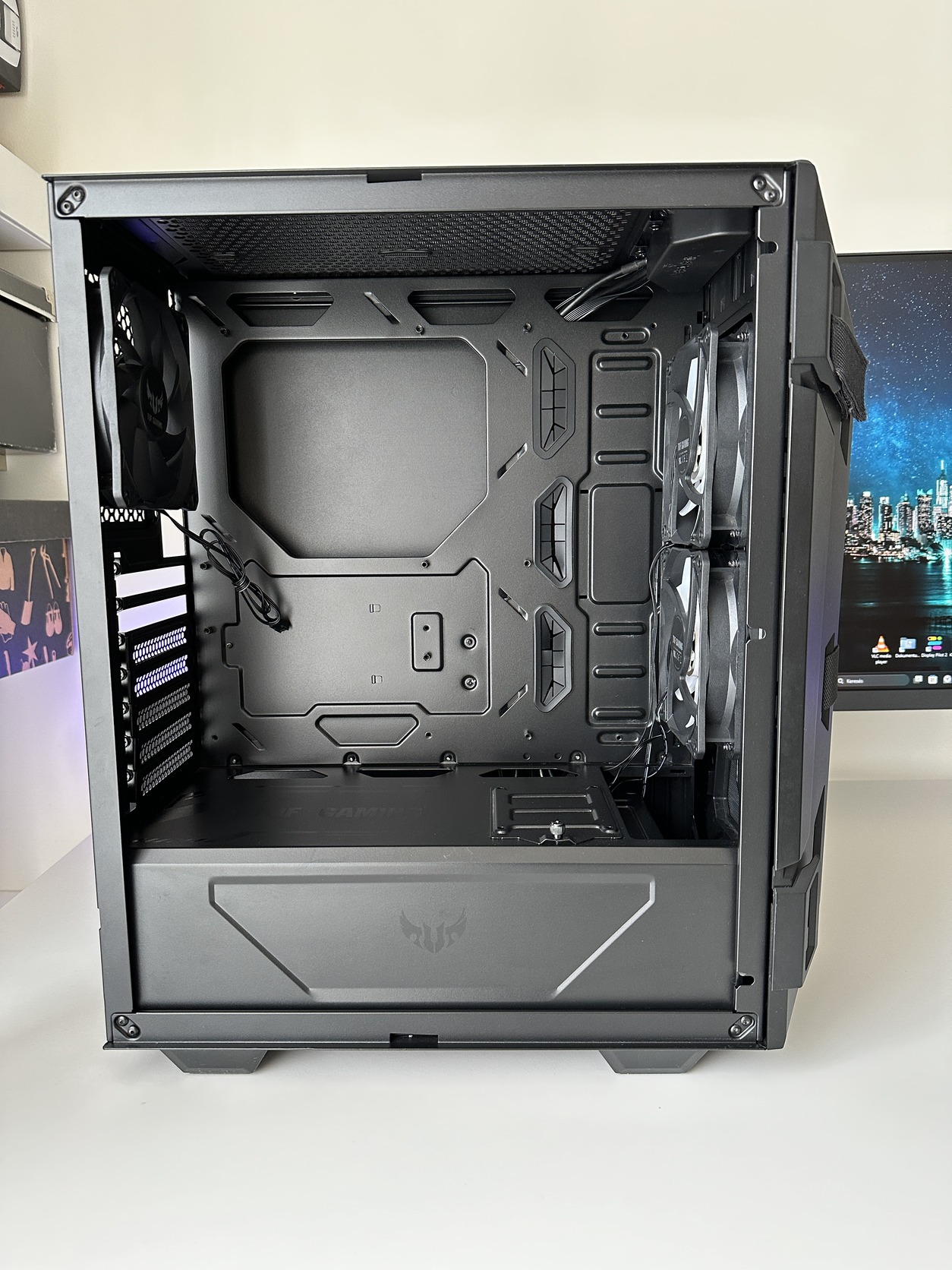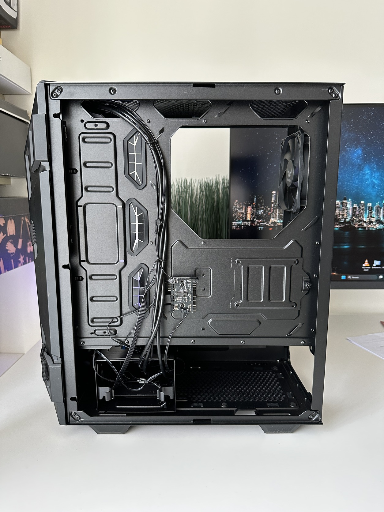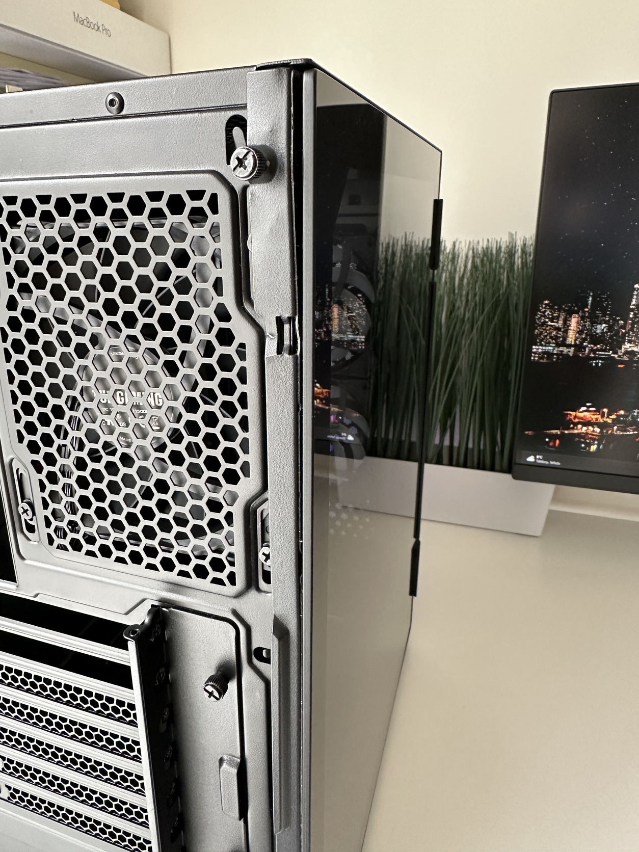 Pormentes, képeken látható ventilátorokkal amiknek már van hangjuk, valamint az üveglapot tartó fémnél, hátul elengedte egy részen a kétoldalú ragasztó, fényképeken látható, ettől függetlenül stabilan a helyén marad és csak közelről látszik.