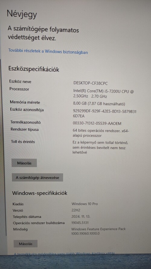 Telepített, eredeti Win 10 Pro-val.