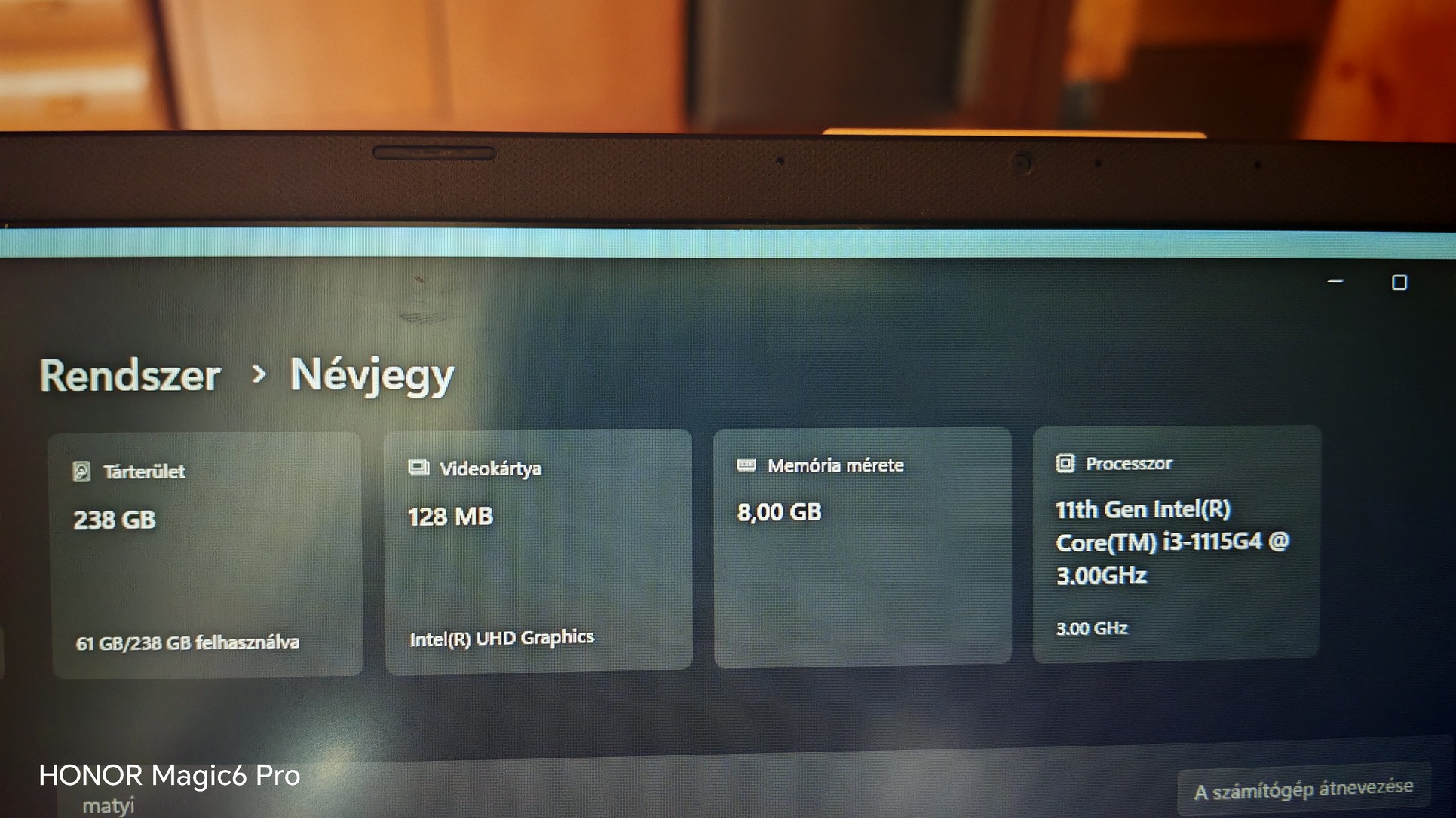 Processzor: Intel® Core™ i3-1115G4 processzor