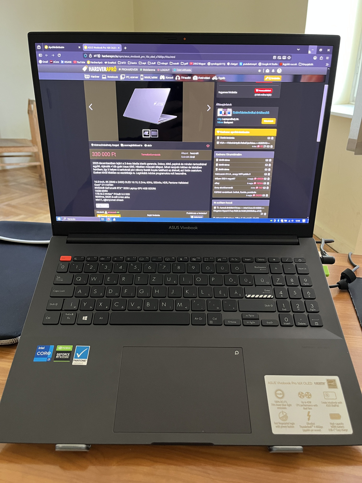 2025 decemberében lejárt a 3 éves Media Markt garancia. Doboz, töltő, papírok és minden tartozékával együtt. Ajándék +1db gyári Asus töltő. Hibátlan műszaki állapot. Mivel neoprén tokban és táskában hordtam, így 3 helyen a sarkoknál pici vékony festék kopás található az éleknél, ezt fotón csatolom. Ezeken kívül hibátlan az esztétikája is. Leginkább Adobe programokra volt használva.