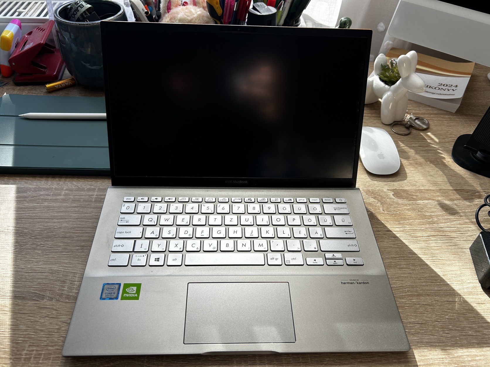 Eladásra kínálom asus VivoBook S431F típusú "Moss green" színű laptopomat. Nem volt sokat használva, ennek köszönhetően tökéletes állaponak örvend. Az nVidia kártya segítségével játékok is simán elfutnak rajta, habár én ezt sosem próbáltam. A töltője is jó, nem szakadt, normálisan tölt. Az arcfelismeréssel jelszó nélkül be lehet könnyen jelentkezni a számítógépbe. Fedlapon egy kisebb karc, ez szerintem szállítás közben jöhetett.