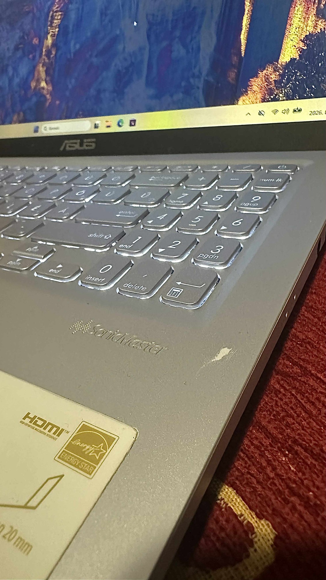 A fedlapján és a billentyűzet jobb oldalan karcos.