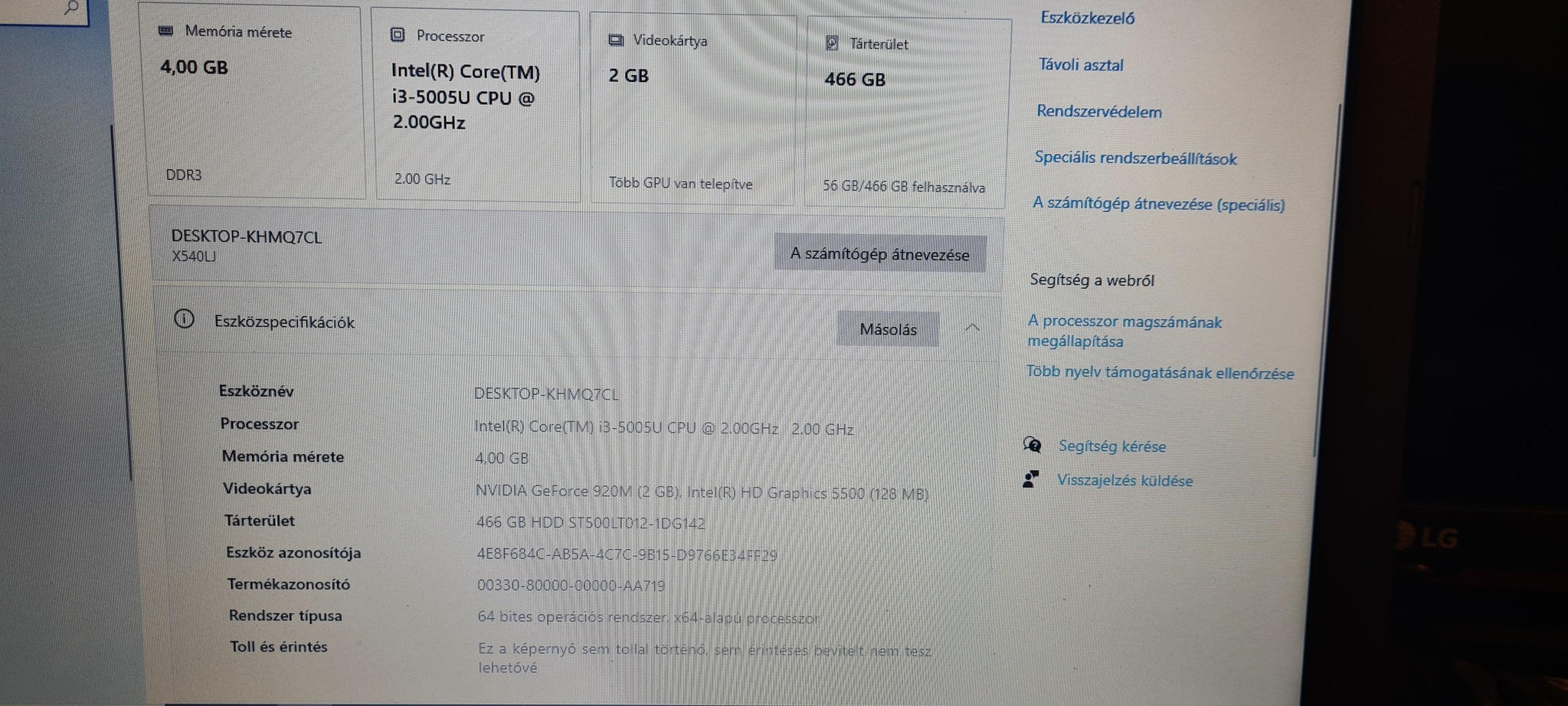 Eladó I3 5005cpu 2,0Ghz 4GB RAM N-VIDA VIDEOKÁRTYA 128MB 512gb HDD Kijelző 15.6"