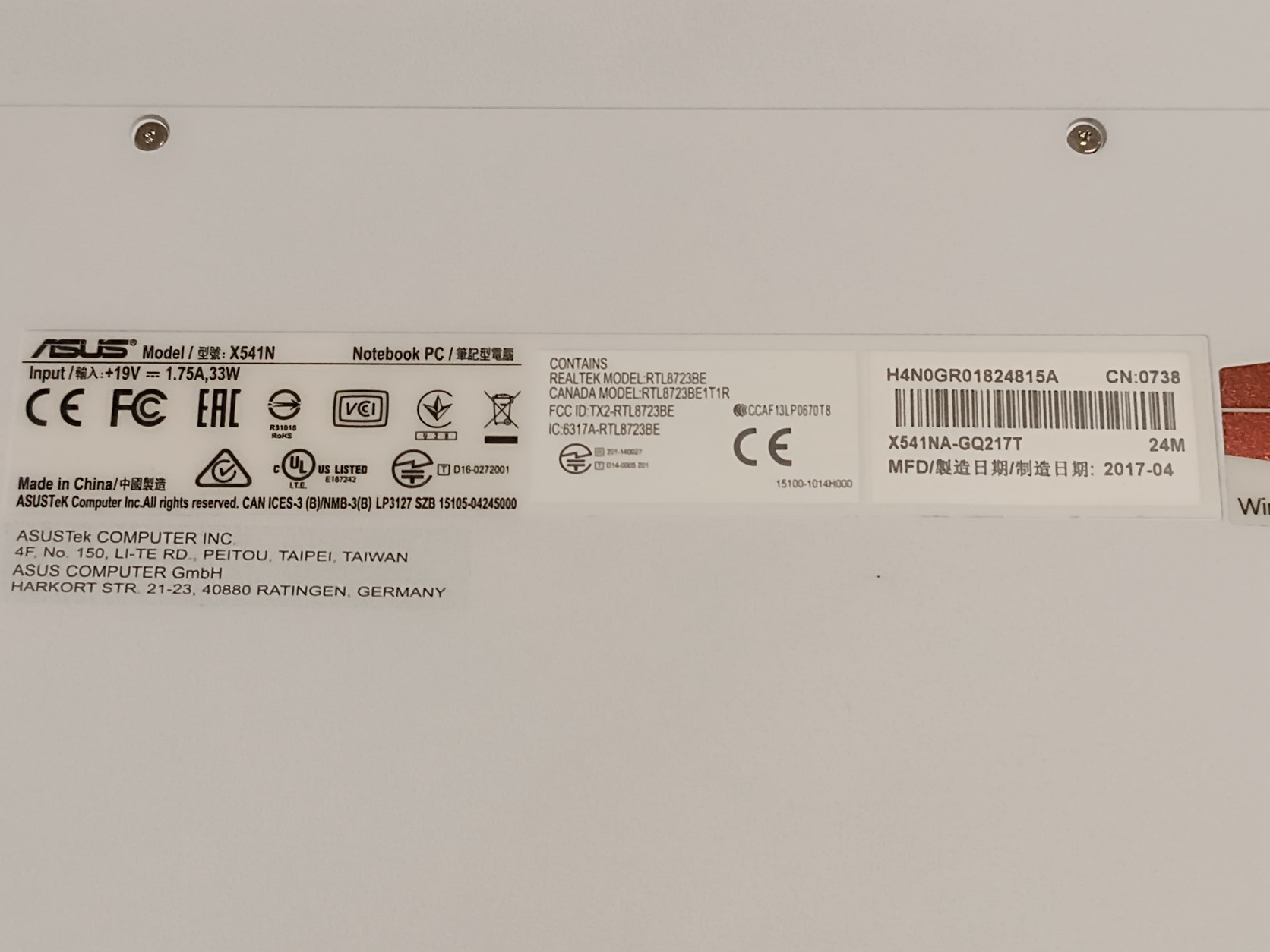 Asus x541n vivobook