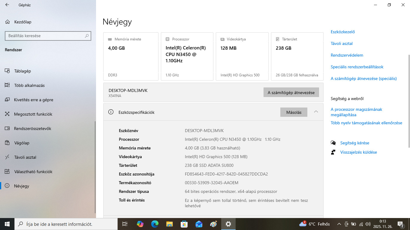 - Processzor: Intel® Celeron® Processor N3450