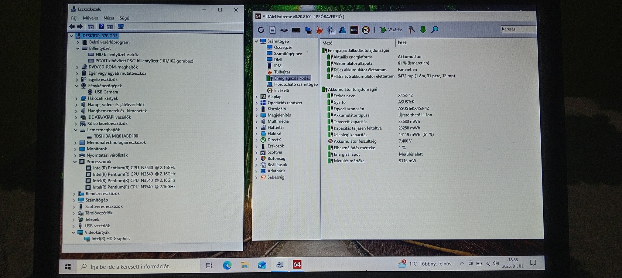 akku jó (aida 64 szerint 1% elhasználódás)