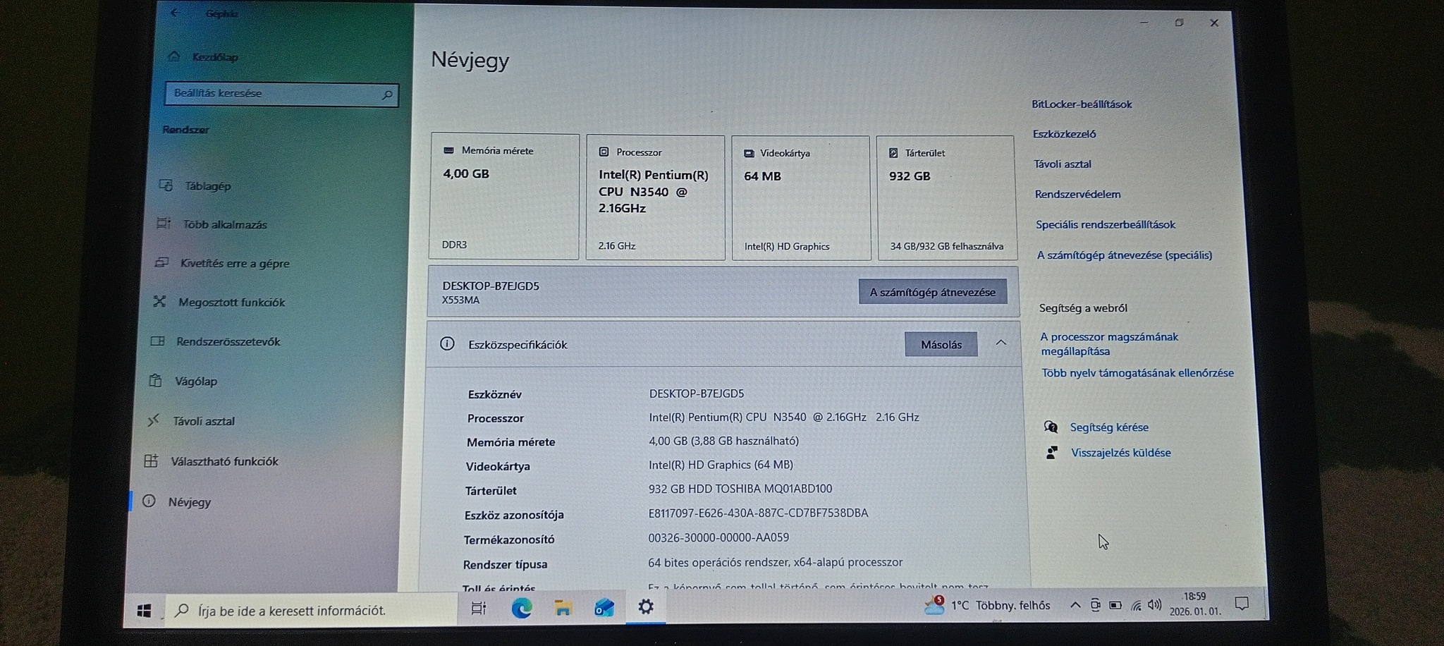 Windows 10 Home 64bites op rendszer