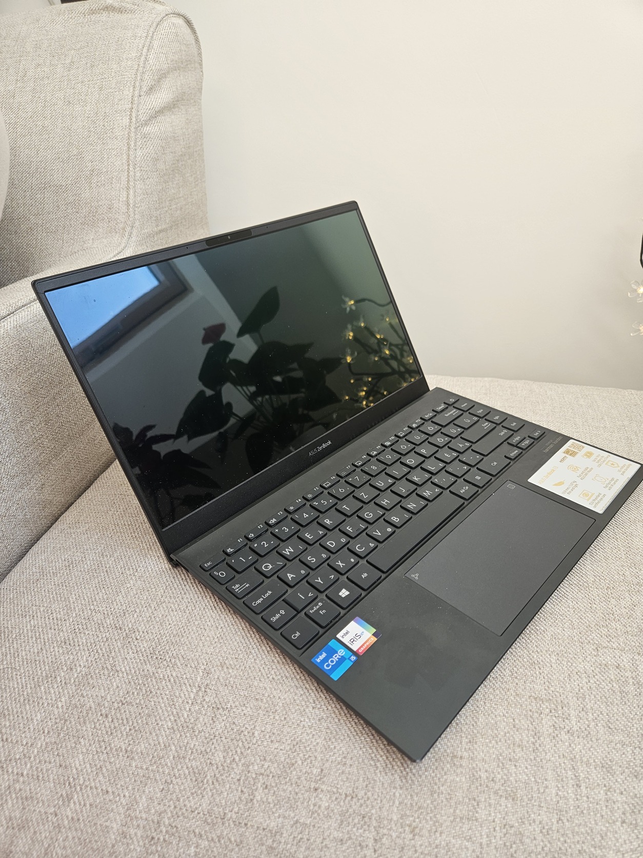 A monitor külső felére, illetve bal oldalt a touchpad mellé matricák voltak ragasztva. Ezek nyoma/sziluetje minimálisan látszik (a csatolt képen is látható)