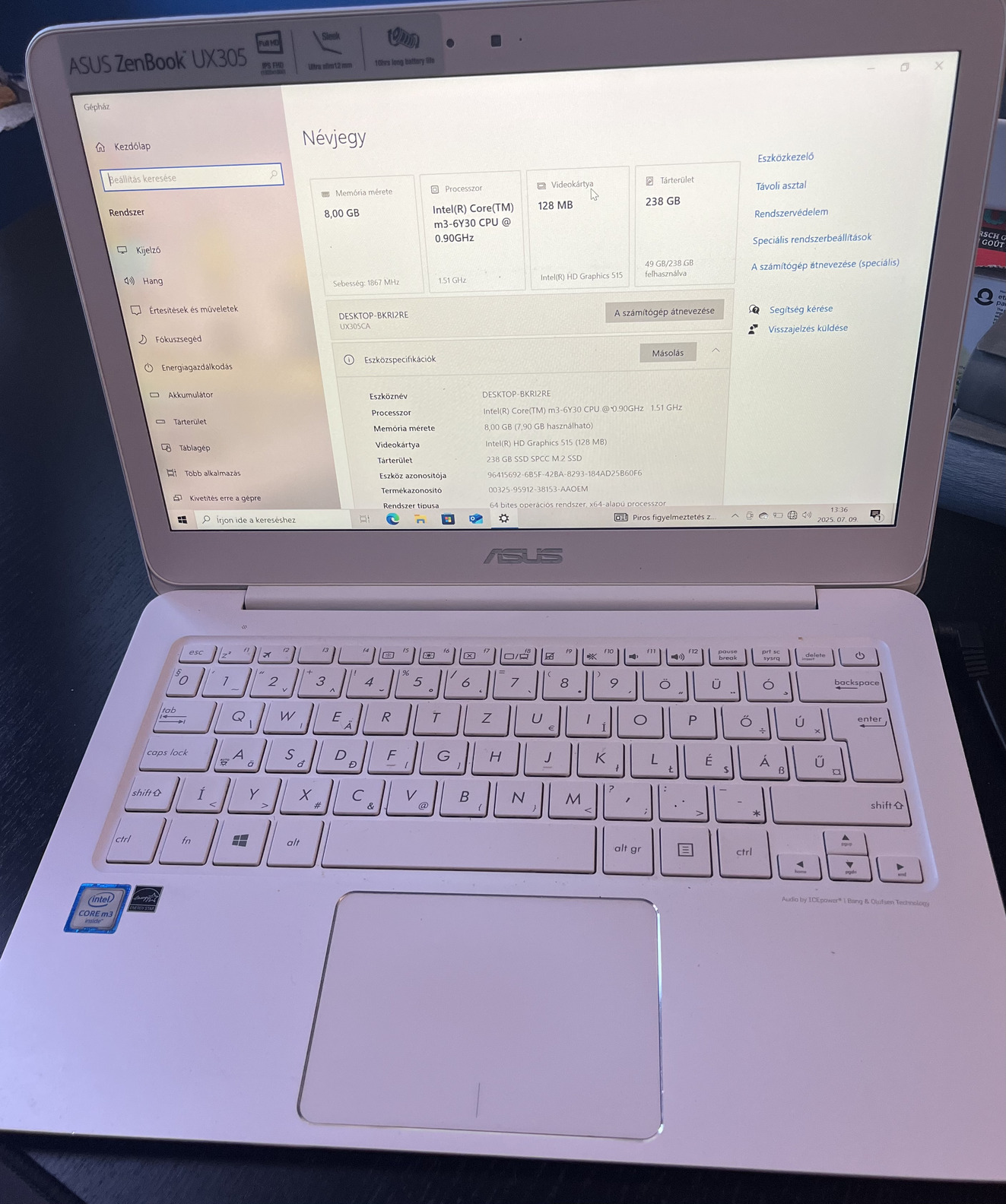 Tökéletesen működő Zenbook (kívülről sérült de tökéletesen működő)töltővel, több esztétikai hibával, ahogy a képen is látható.