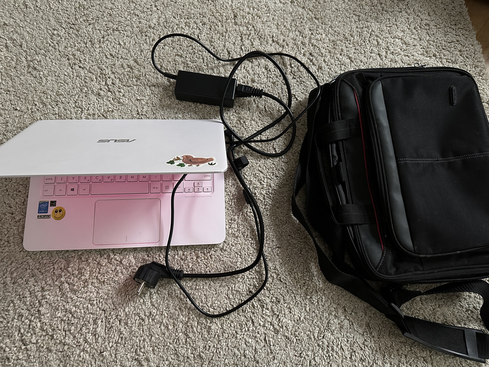 Töltővel, laptop táskával.
