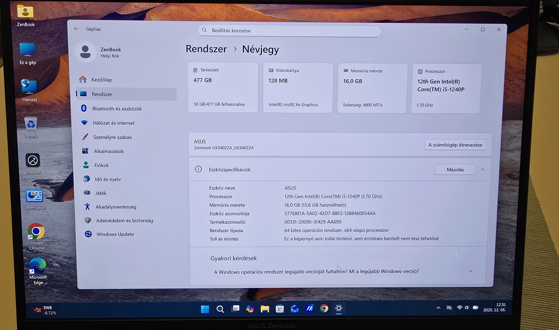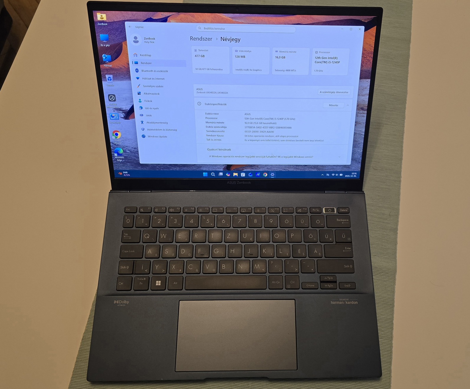 Eladó egy ASUS ZenBook UX3402Z OLED kijelzős notebook, dobozával, gyári töltőjével, Windows 11 PRO-val.