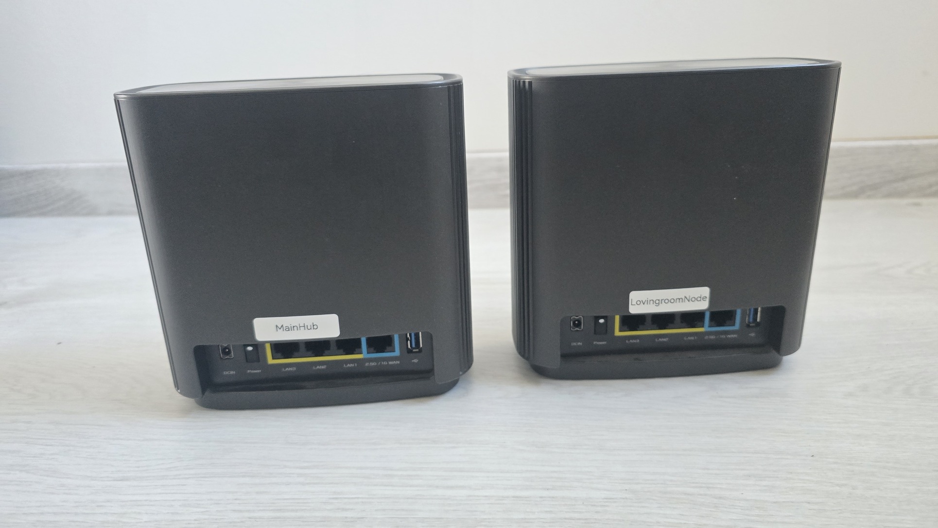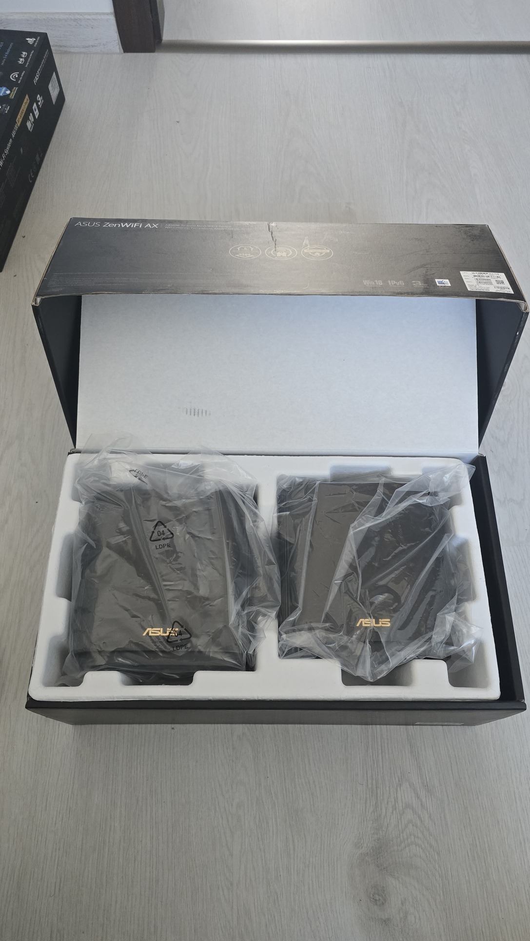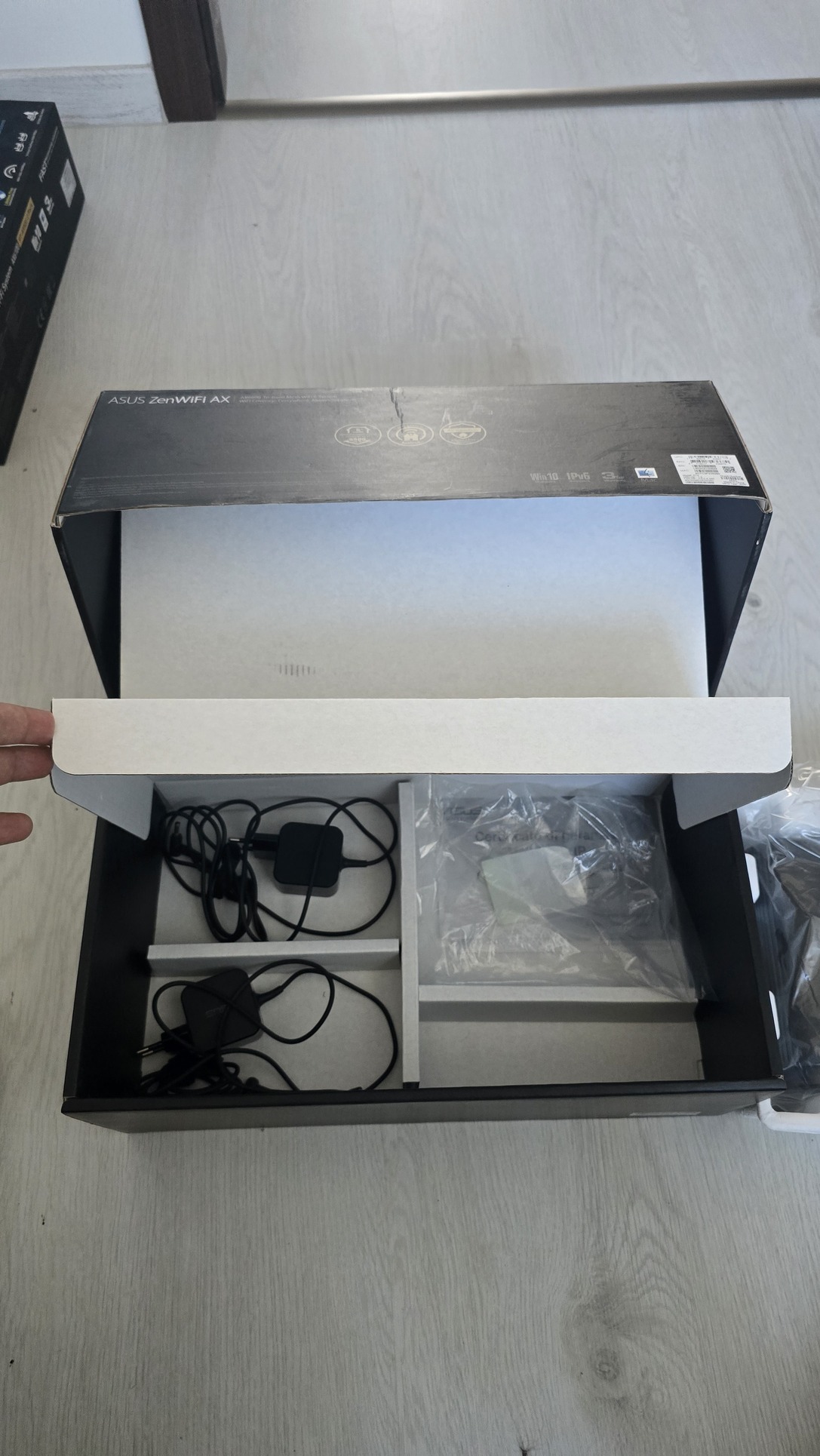 Eladó Unifi-ra váltás miatt egy mesh rendszerbe integrált hibátlan Asus ZenWifi XT-8 AX6600 2 részes szett a képeken látható állapotban és tápegységeikkel.